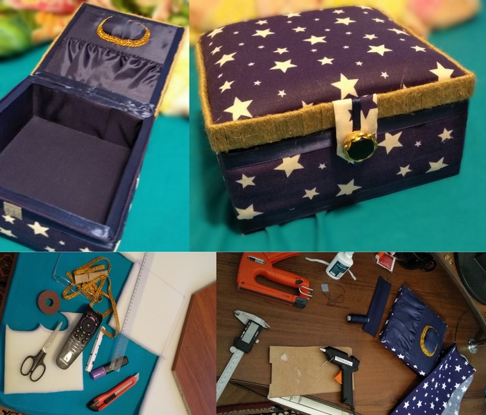 Лично мое мнение - лучше подарки "ожиданные", чем не нужные, поэтому накануне ДР подруги позвонила ей с вопросом - "Ну что тебе, дорогая, подарить?" "- А подари-ка ты мне шкатулку для фигни рукодельной, ибо старая износилась совсем!" Да не вопрос, подумала я, и интересу ради поползла на али ознакомиться с ассортиментом, предлагаемым доблестными китайскими производителями, так как в городских наших магазинах оный именно оттуда. Итак, решено - схожу в магаз, гордо именуемый "гипермаркет товаров для рукоделия" и куплю желаемое. По итогу - озадачившись сложным выбором из пары-тройки позиций, совершенно бездушевных, меня посетила идея. Нет, не так - ИДЕЯ! Тварь ли я дрожащая или руки у меня таки не из опы растут? Я решила сделать шкатулку сама. Итог на фото ниже. По моим ощущениям - я БАГиня хендмейда! Удовольствие от проделанного, шатание от бессонной ночи, довольная моська именинницы... Насколько глубоко руки мои укоренены в пятой точке - тема для меня таки не раскрылась. Но мон маман и пара подруг уже возопили "- А мнееее?!" Конструктивная критика и советы приветствуются, при выполнении работы ни одно видео с ютуба не пострадало и не посмотрелось, все сделано на "глазок" и по линейке просто от души, фото на лопату от xiaomi дрожащими руками.