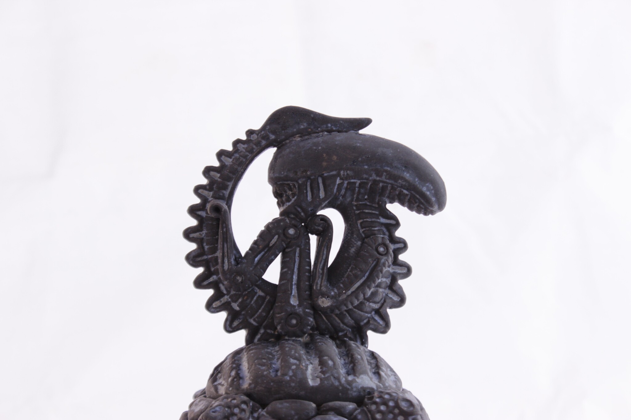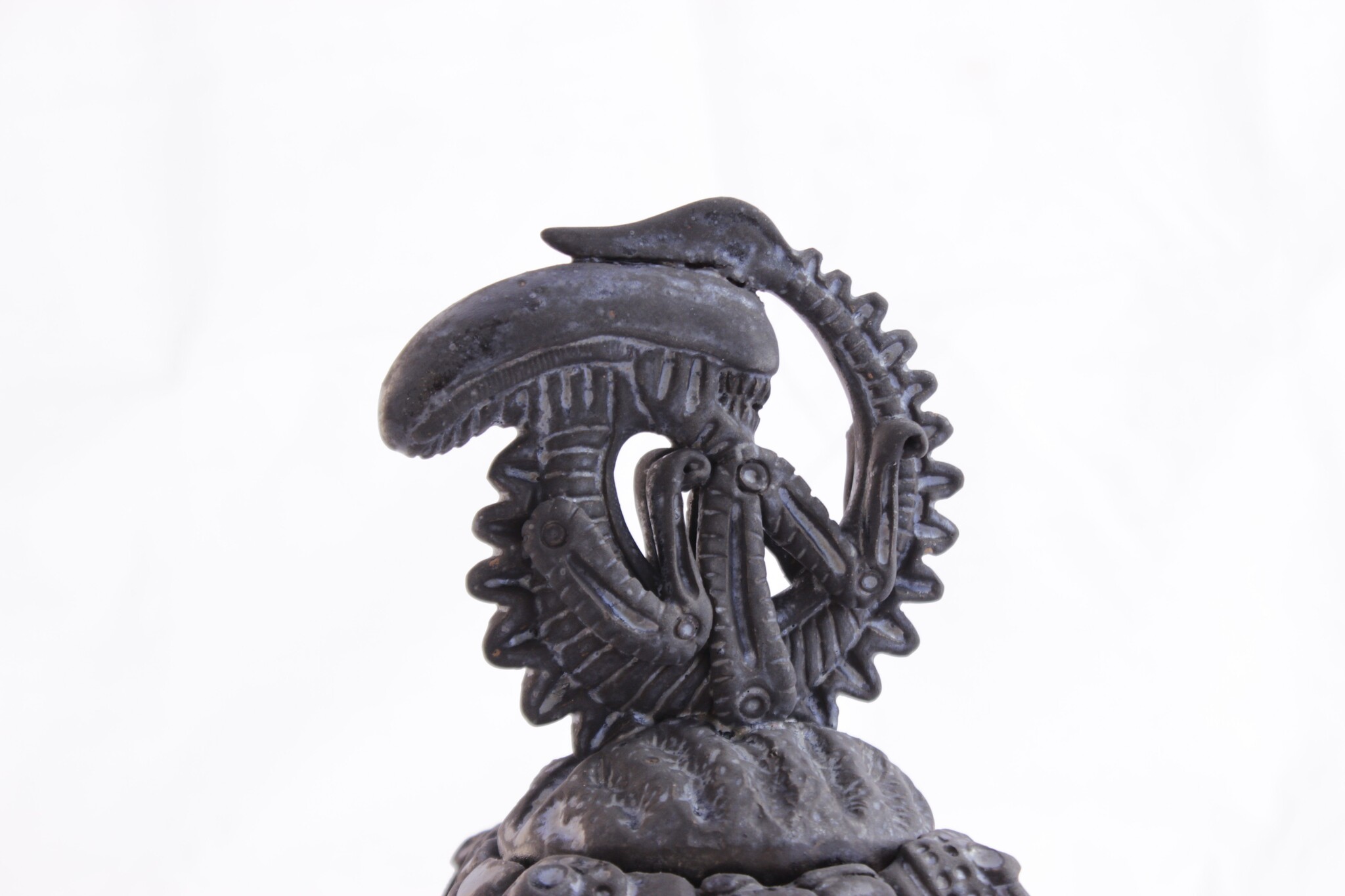 Обещанного, говорят, три года ждут. Я справился за один. Встречайте, шкатулка в стиле "Чужих", которая висела в задачах с осени прошлого года. Лепилось всё из дикой глины. Сама колба сделана методом отминки по форме, остальное - ручная лепка. Декорирована эффектарной глазурью "Нефть".