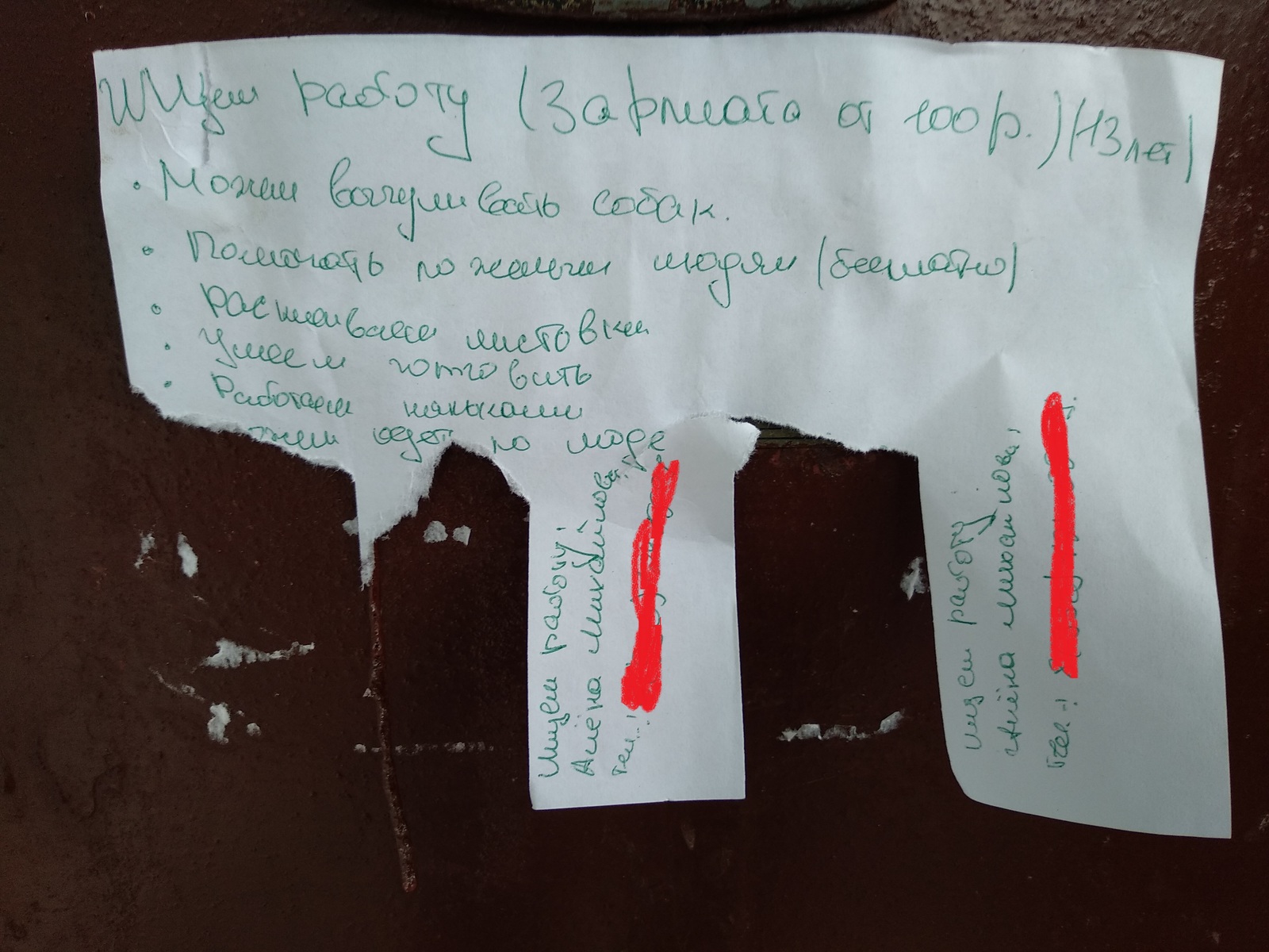 решил поделиться фото детского объявления по поиску работы, которое обнаружил вчера на подъезде.
