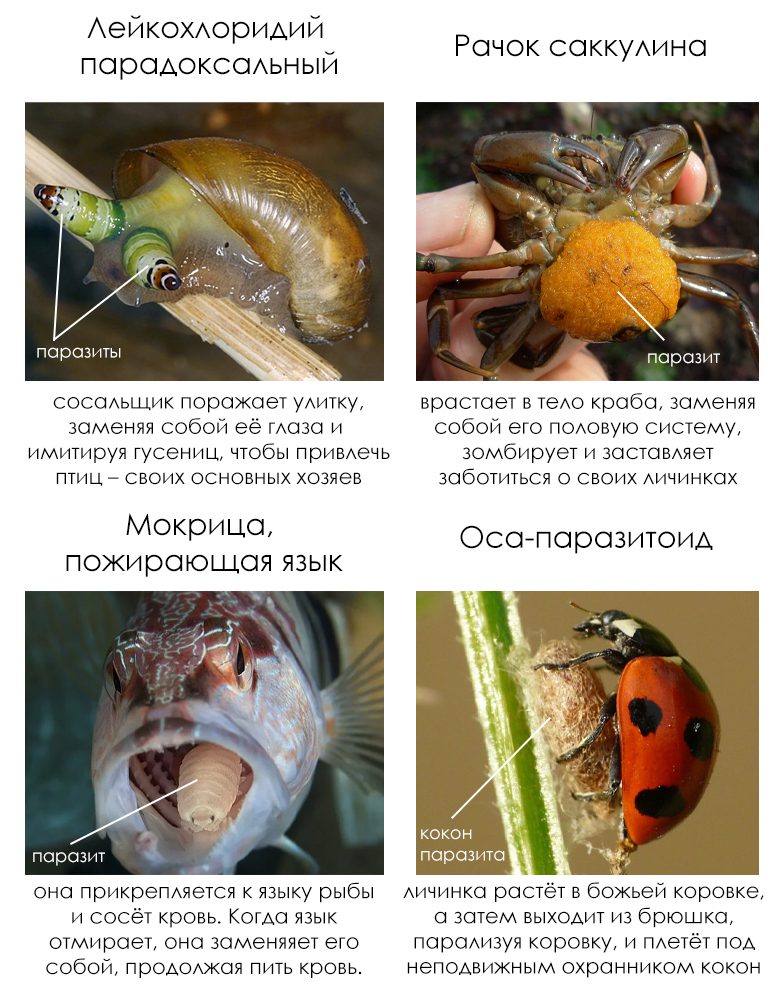 Снова суббота, а это значит, что я несу вам четыре факта, которыми удивляю школьников на уроках биологии. Сегодня подборка посвящена паразитам, которые взаимодействуют со своими хозяевами так плотно, что становятся их частью, а иногда и подчиняют своей воле.