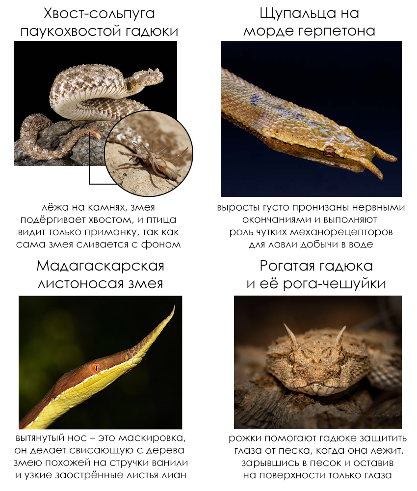 И вновь суббота, а это значит, что я несу вам четыре факта, которыми удивляю школьников на уроках биологии. Сегодня подборка посвящена змеям с неожиданными дополнительными частями тела.