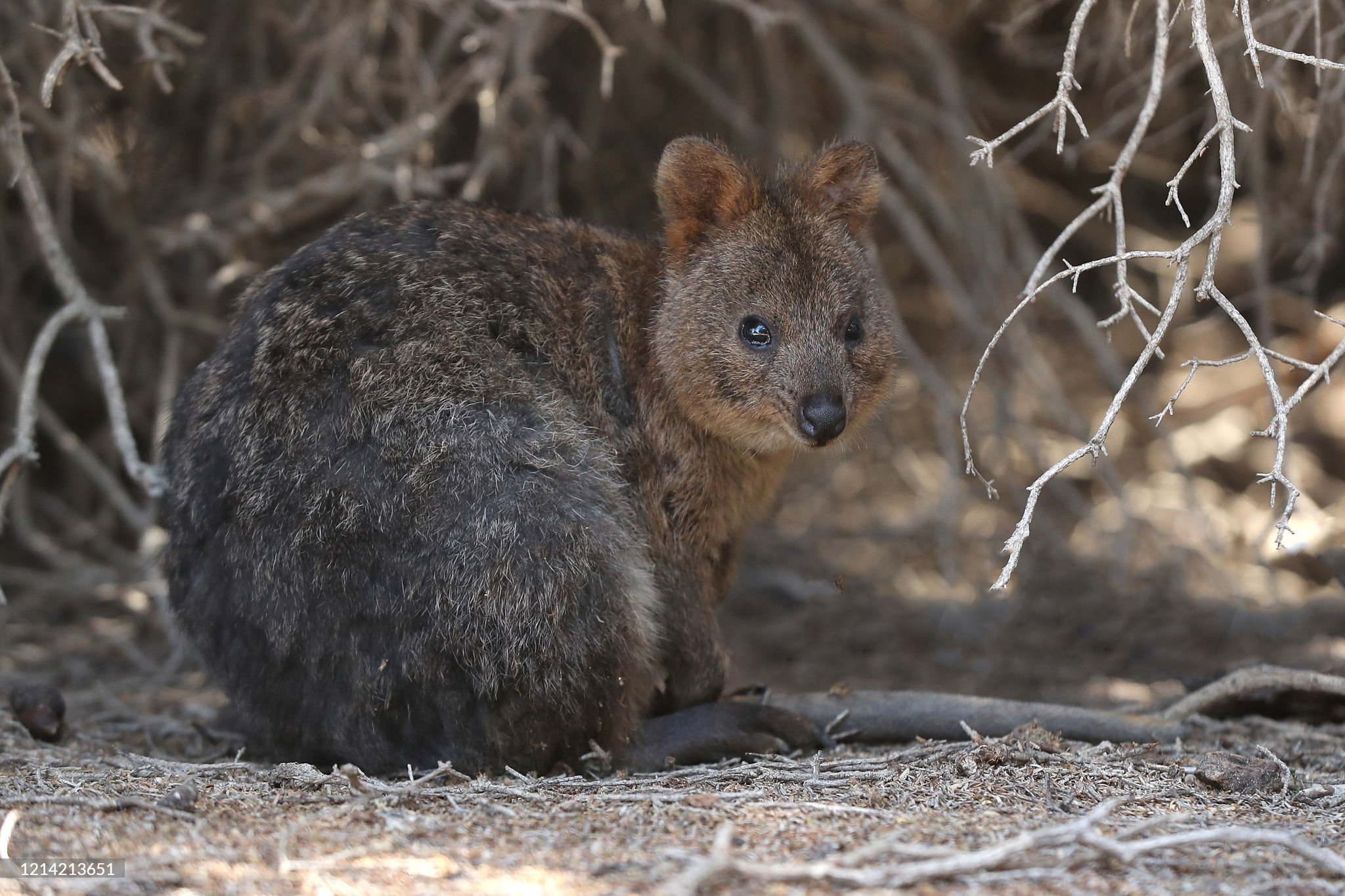 А что ей остаётся? У квокк 32 мелких зуба, но нет клыков, поэтому защищаться от хищников им нечем. Впрочем, хищнику до квокки нужно сначала добраться, ведь, осознавая свою беззащитность, эти звери предпочитают устраиваться на дневной сон в зарослях акантокарпуса – колючего кустарника, между ветвями которого некрупная квокка пролезает легко, а вот кто побольше уже не пролезет, не оцарапавшись. Сравните: квокки весят от 2,5 до 5 кг, а их главные враги – собаки Динго – от 10 до 24 кг.