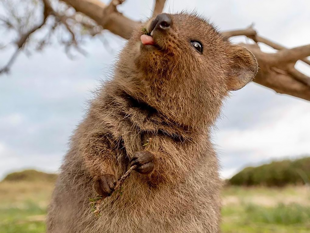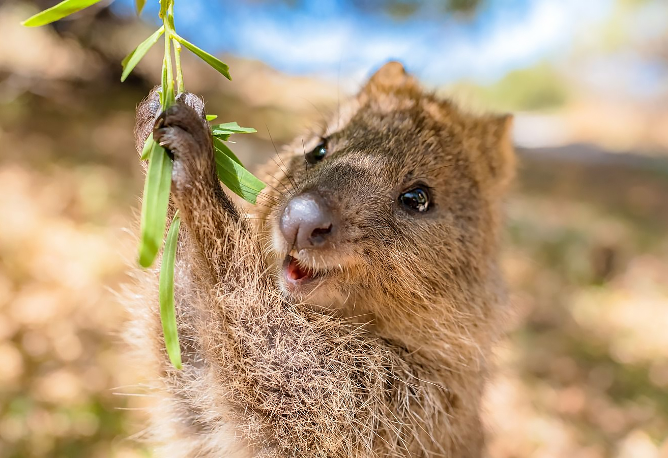 2. Но и это не всё. Обычно квокки собирают растительность на высоте своего роста, но, завидев какую-нибудь вкусняшку повыше, без лишних раздумий полезут за ней на дерево.