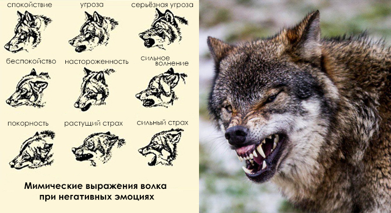Учёные различают около 10 основных мимических выражений: гнев, злоба, покорность, ласка, веселье, настороженность, угроза, спокойствие, страх, а также множество их оттенков.