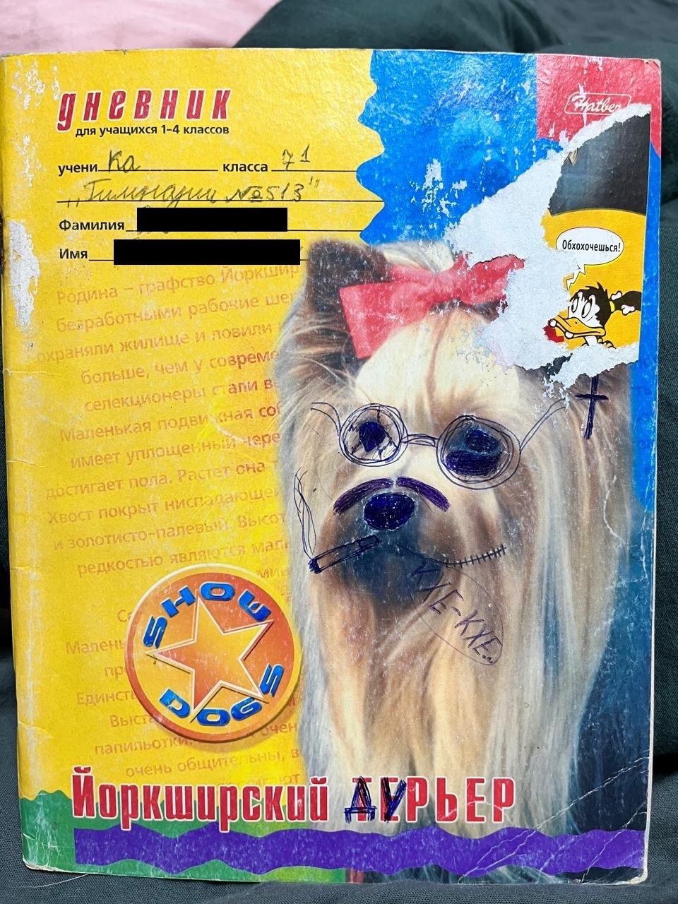 Когда я с этим дневником подошёл к математичке - она даже не поняла, что это приклеенная фотография лица и спросила меня кто меня так сфотографировал аххахахаххахахах до сих пор помню и угораю с этого момента))))