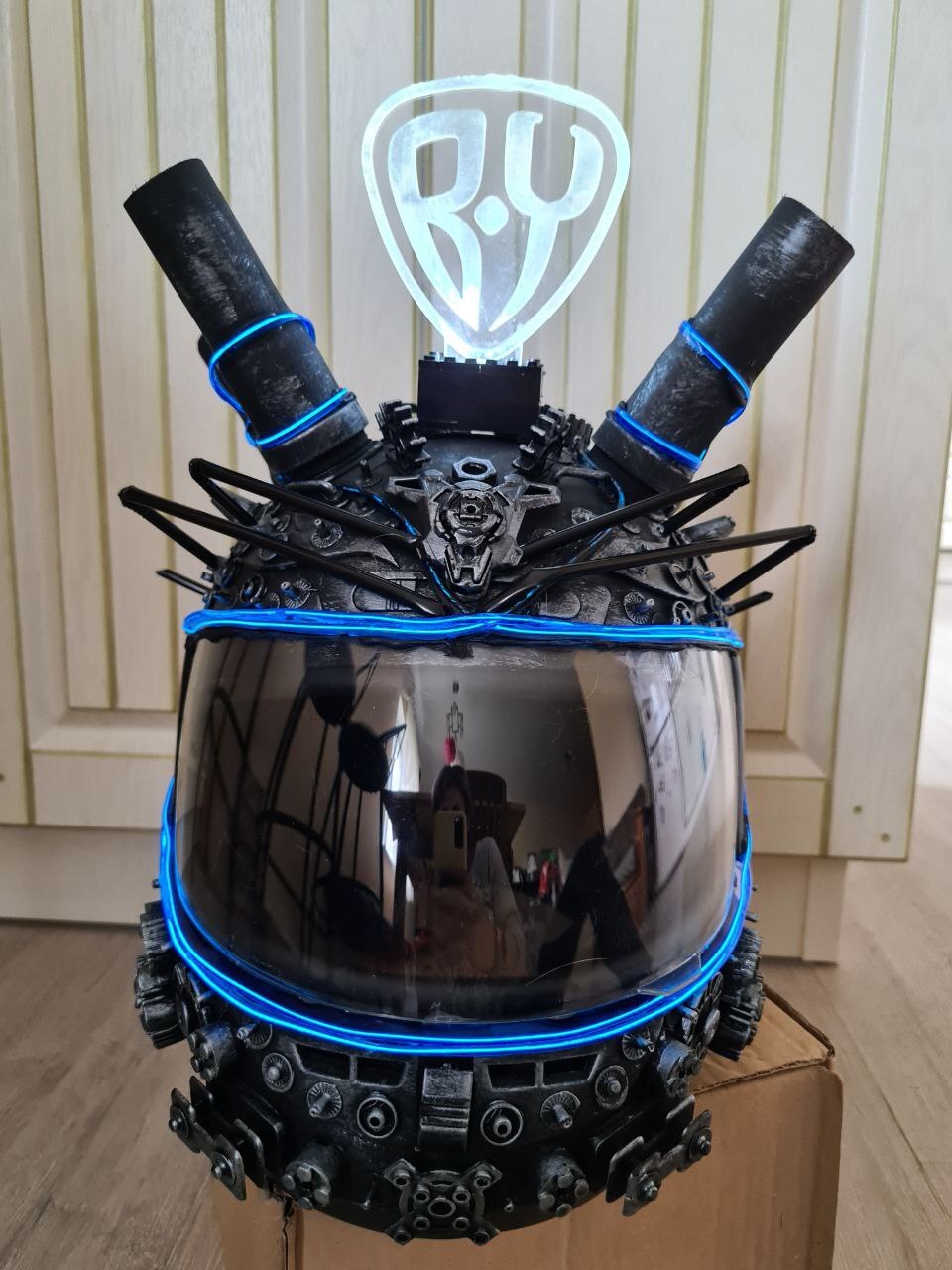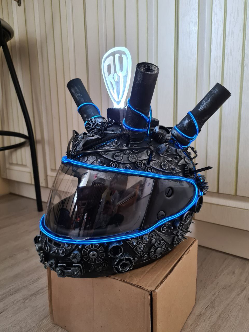 Заказ на изготовление шлема в стиле "я так вижу киберпанк" для одной торговой сети.