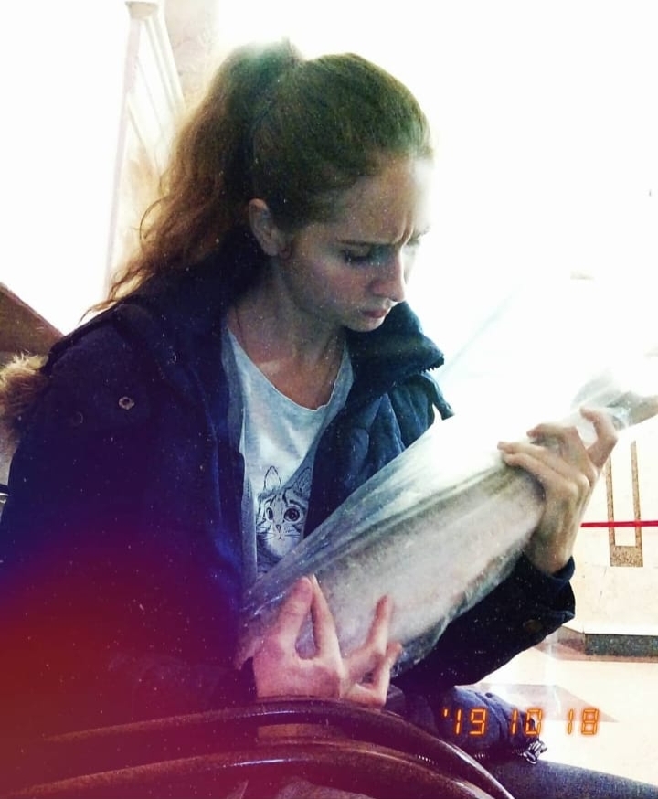 Мы сидели рядом - я и три нерки. Мимо шли серьезные тетки и уставшие дядьки, на меня иногда глядели полицейские, а нам стало скучно. Задумавшись о своем, я сделала лёгкий трунь по пакету, в такт мелодии. А дальше... А дальше я играла на рыбе и иногда отщипывала от нее кусочек, чтобы заглушить предательское соло кита внутри меня.