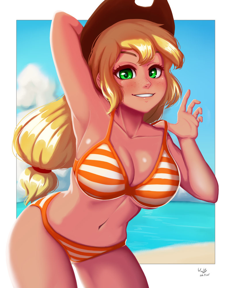 53 Fejar My Little Pony Шляпа на пляже 3 года назад Автор. My Little Pony Ponyart Хуманизация MLP Edge Applejack The-park 1 Ещё 0