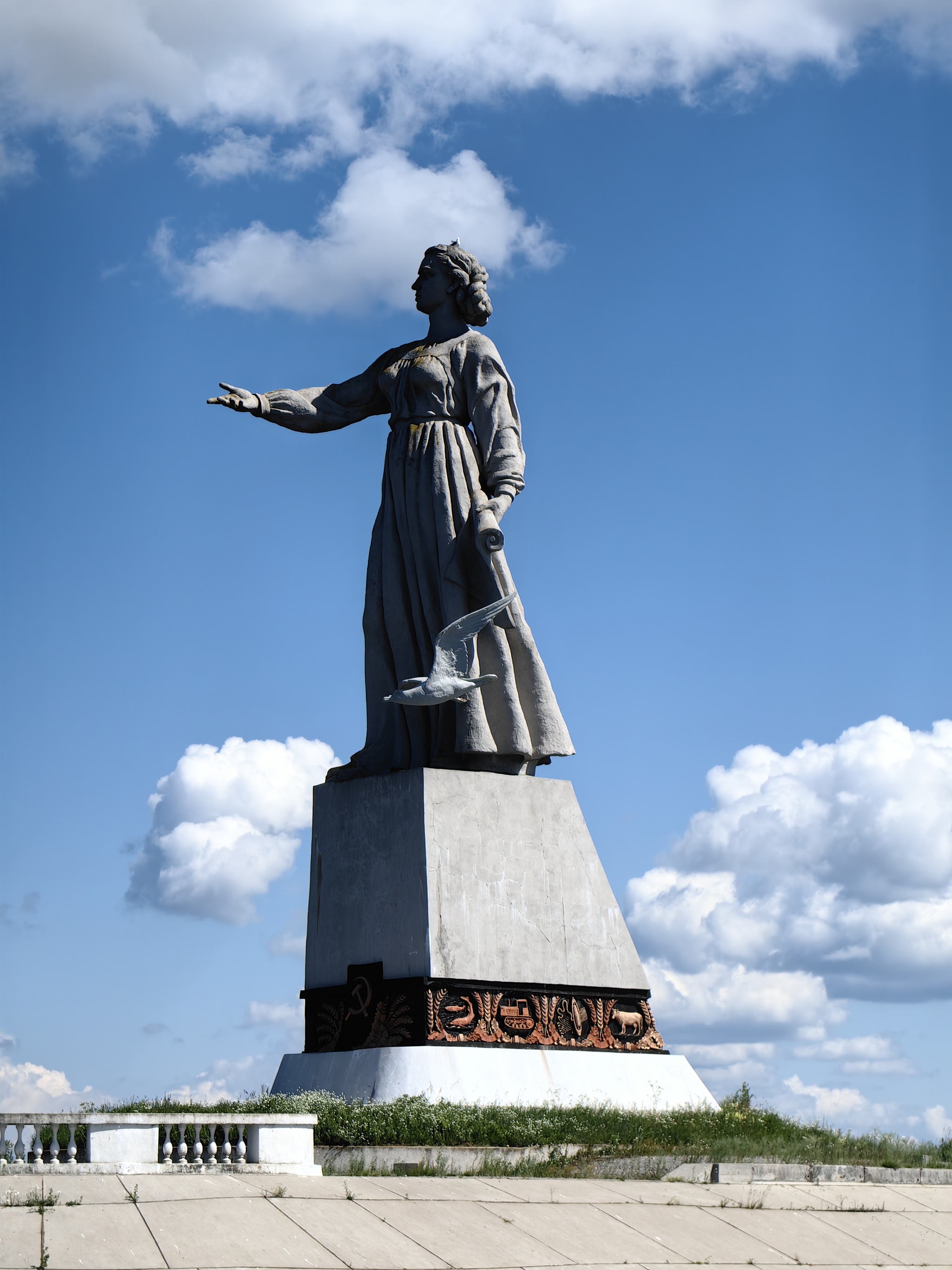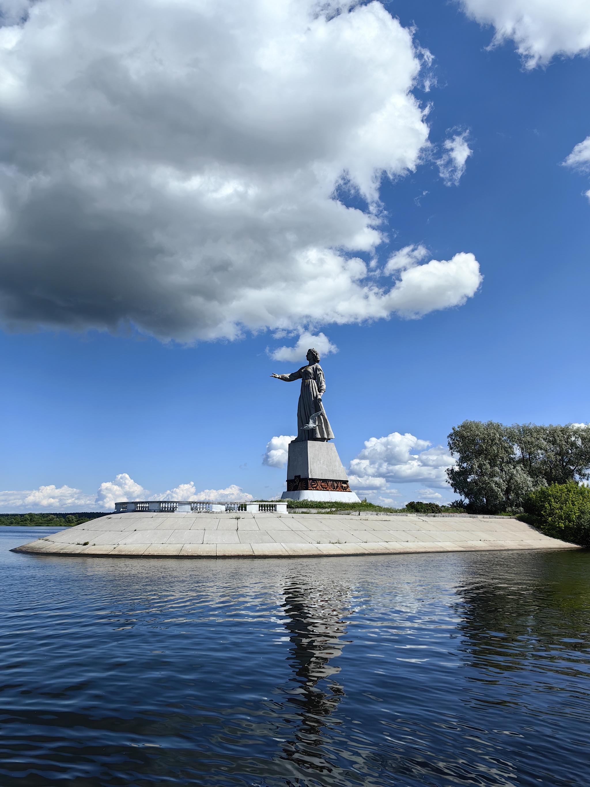 На входе в шлюз Рыбинской ГЭС встречает монумент "Волга" ("Мать-Волга"). Всегда здороваемся с матушкой.