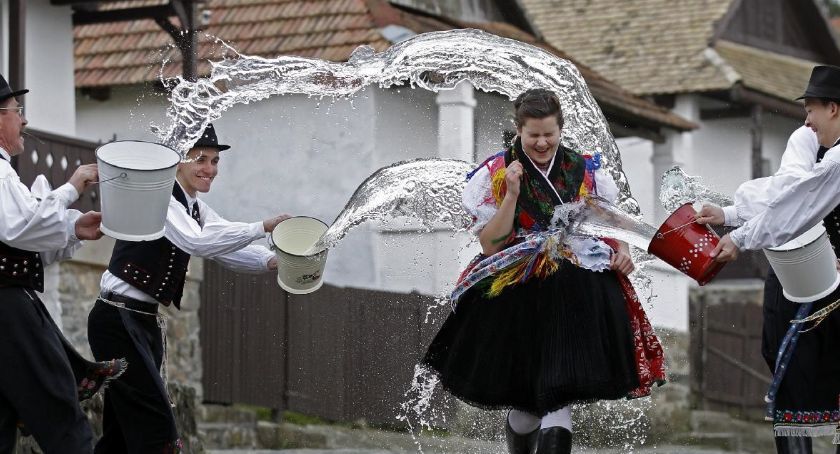 Распространенный обычай обливать друг друга водой в пасхальный понедельник был своего рода магическим обрядом. Человек, по-видимому, хочет побудить природу последовать его примеру и попросить необходимое количество воды для роста растений весной. Символическое пробуждение природы к жизни прослеживается в обычае окропления озимых посевов святой водой в Пасхальный понедельник. Холостяки тайно поджидали молодую девушку с ведрами и специально сделанными деревянными шлангами или, в высших сферах, с флаконами духов, чтобы облить или. Девочки громко протестовали против обливания, но каждая из них хотела быть мокрой, потому что это значило, что она является привлекательной девушкой. Девушки, которые промокли в этот день, имели больше шансов выйти замуж, а те, кто обиделся, могли впоследствии столкнуться с трудностями в поиске мужа. Считалось, что вода не только символизирует жизнь, но и дарит красоту — якобы девушка, облитая водой, становилась еще красивее и сохраняла свою красоту круглый год. Однако в этот праздничный день девушки не хотели выходить из своих домов, опасаясь, что в это время года их окатят несколькими ведрами ледяной воды. Умные молодые люди всегда найдут способ доставить удовольствие своей избраннице. Иногда роли менялись, и девушки с ведрами воды ждали за дверью избы дынгусяров, или певцов пасхальных колядок, которые ходили от дома к дому.
