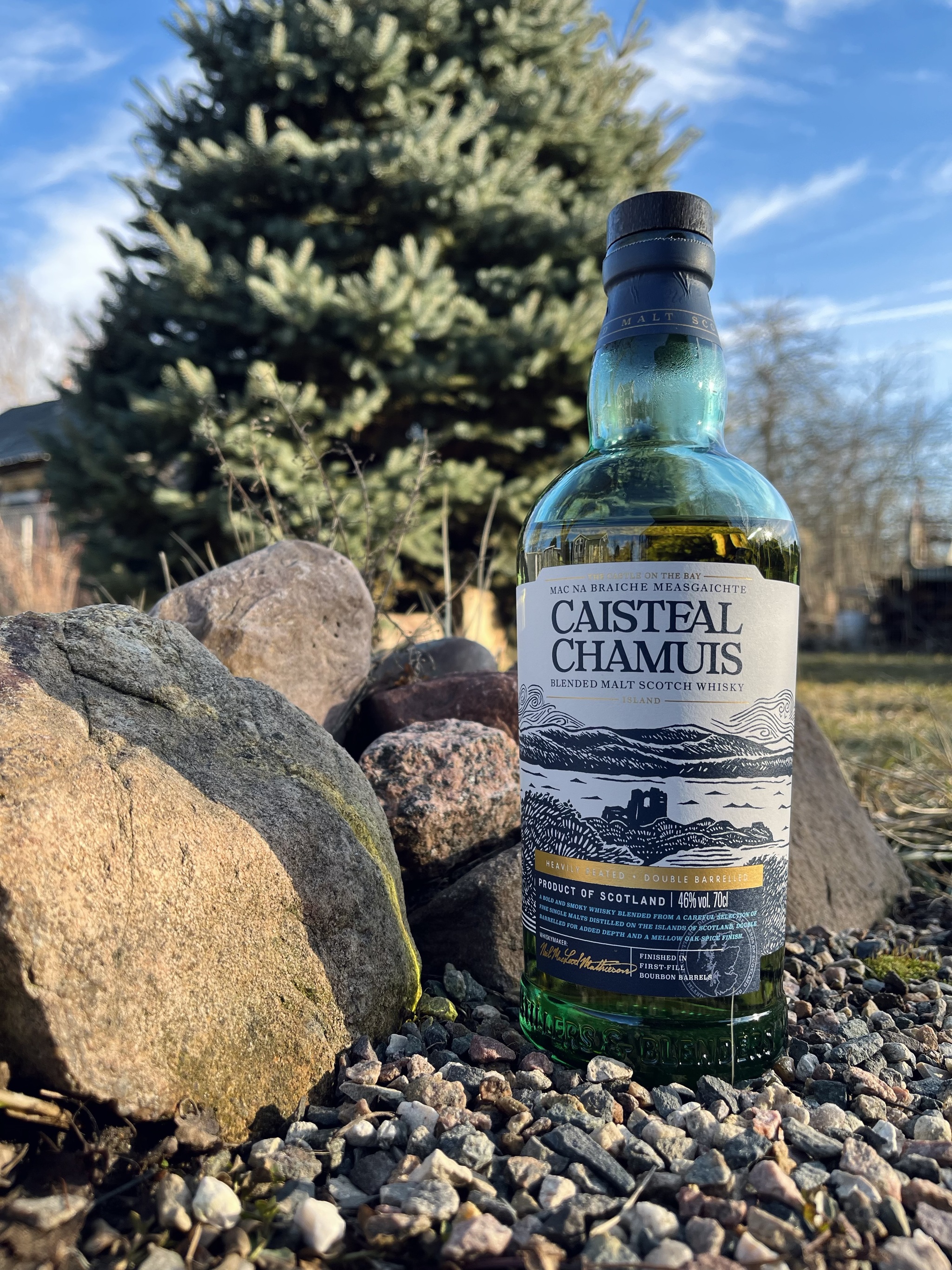 Это первое знакомство c островными виски и выбор пал на Blended Malt Scotch Whisky Caisteal Chamuis от независимого шотландского боттлера Mossburn Distillers & Blenders.