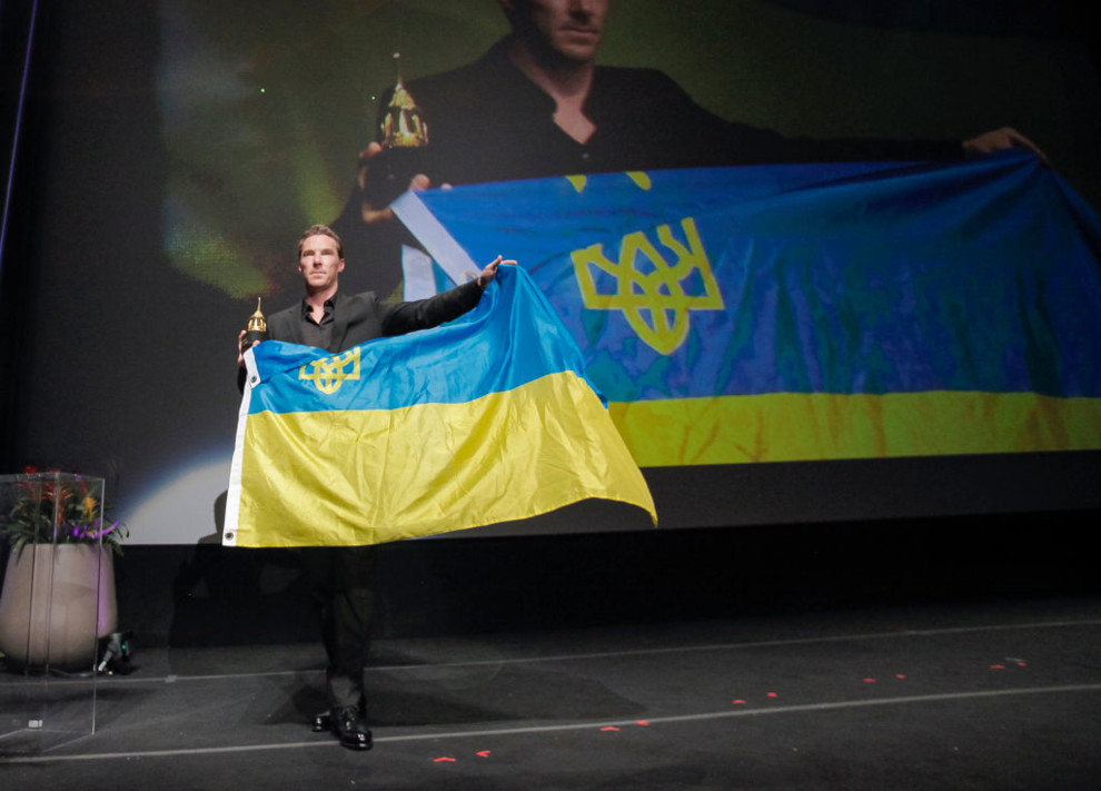Творческий директор "Баленсиага" Демна Гвасалия из Грузии снабдил гостей жовто-блакитными футболками: