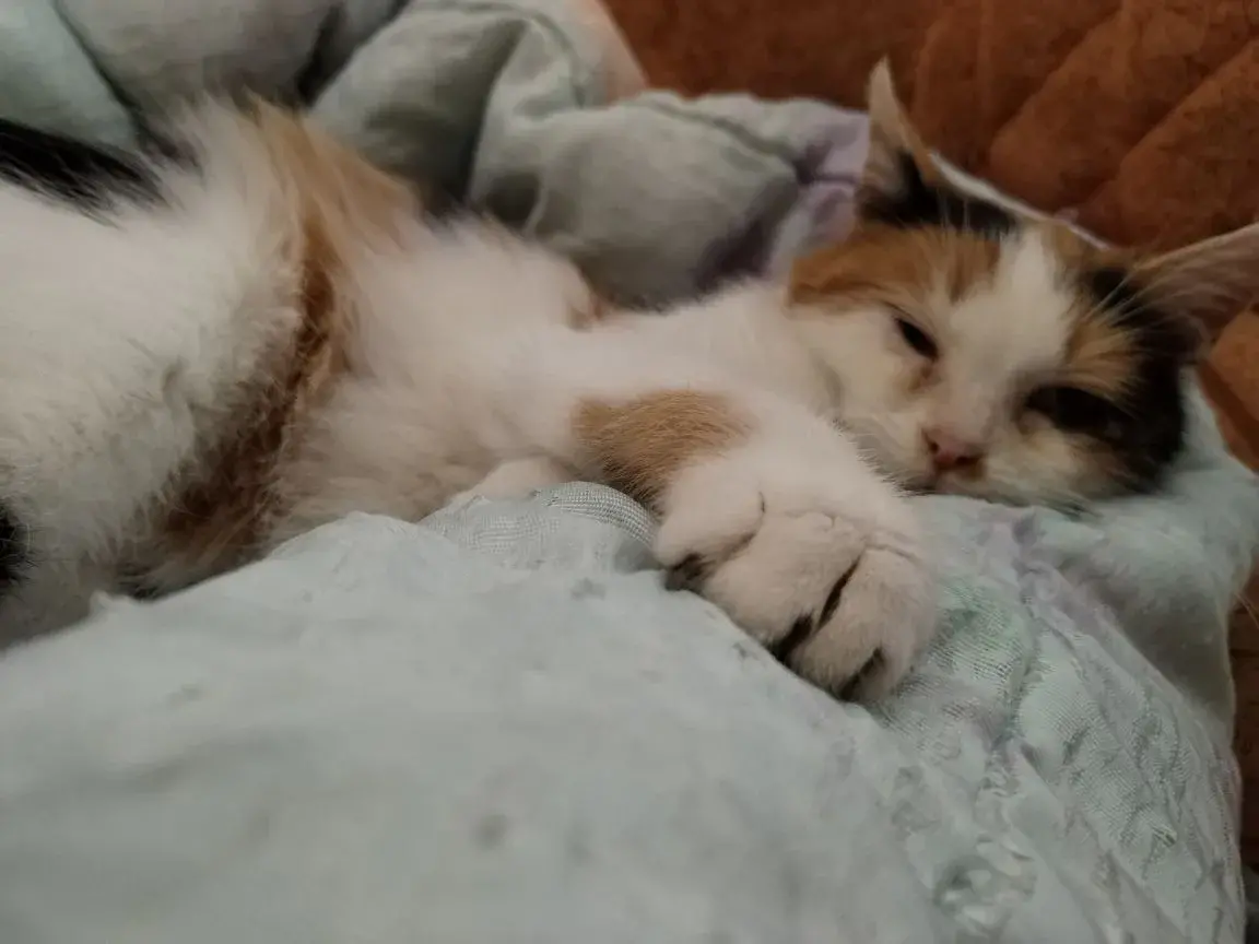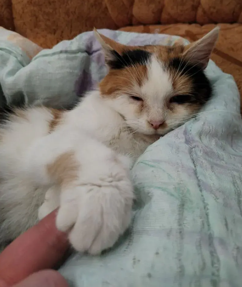 Сейчас она спит, прижавшись к грелке. Иногда вздрагивает от громких звуков. Но когда вы садитесь рядом, она медленно поднимает лапу — и кладёт вам на колено. Это её способ сказать: «Я пытаюсь снова верить».