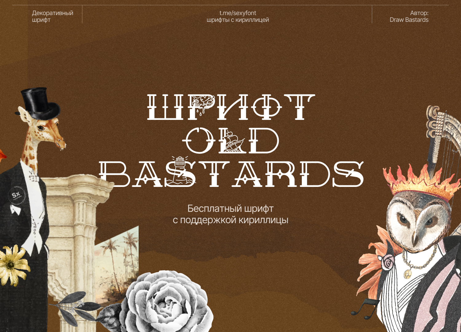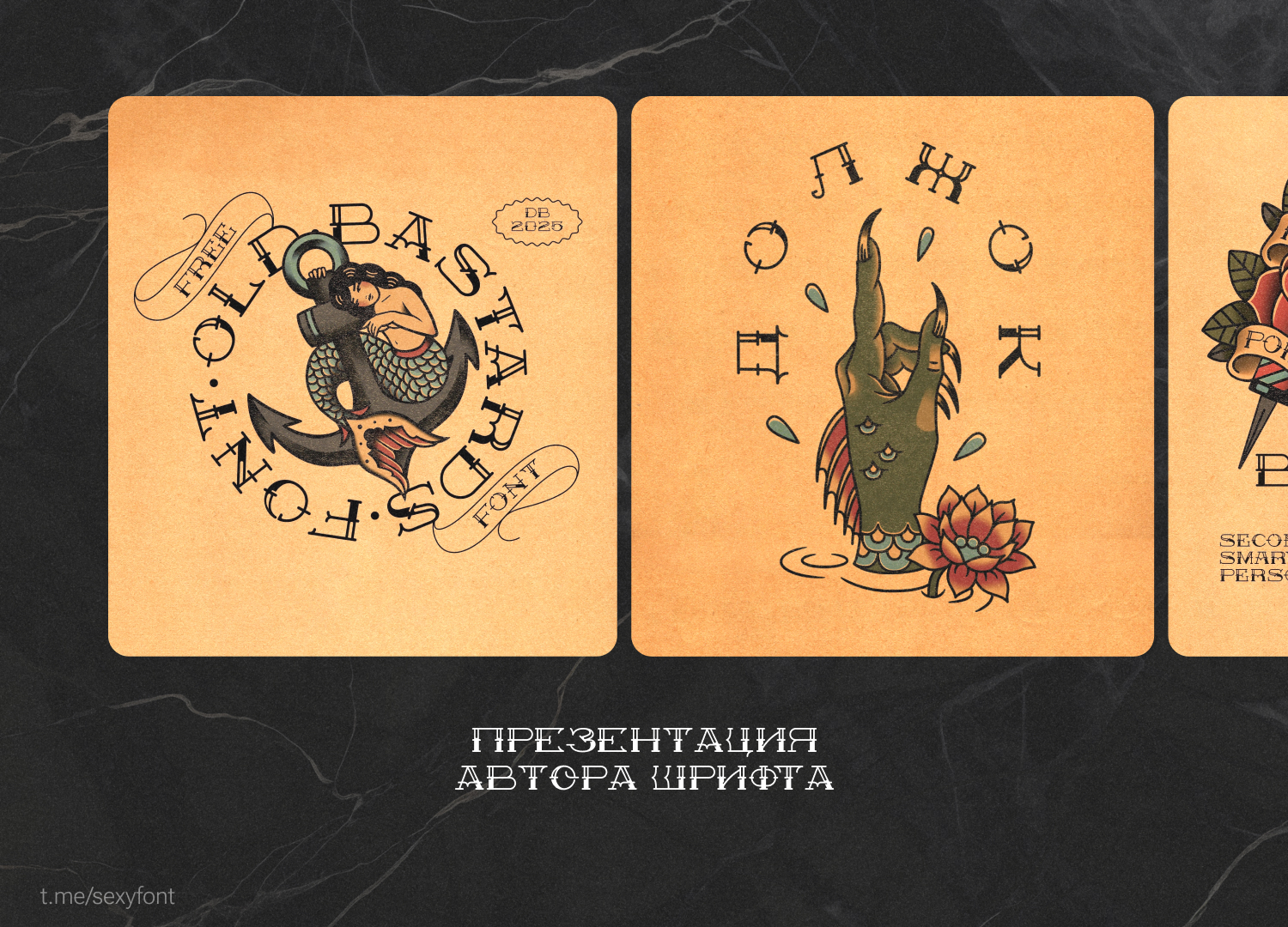 Oldbastards — это бесплатный шрифт, вдохновлённый традиционными татуировками и духом американской олдскульной культуры. Идеально подойдёт для стильных, цепляющих заголовков, хулиганских цитат и рекламных слоганов.