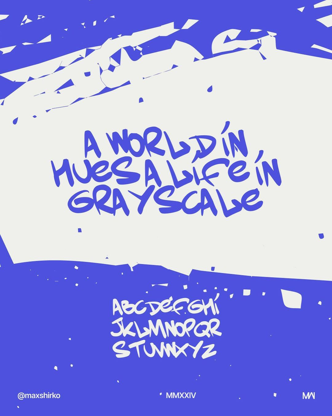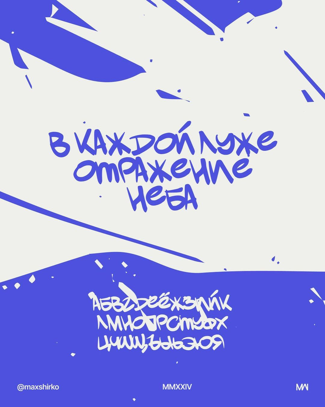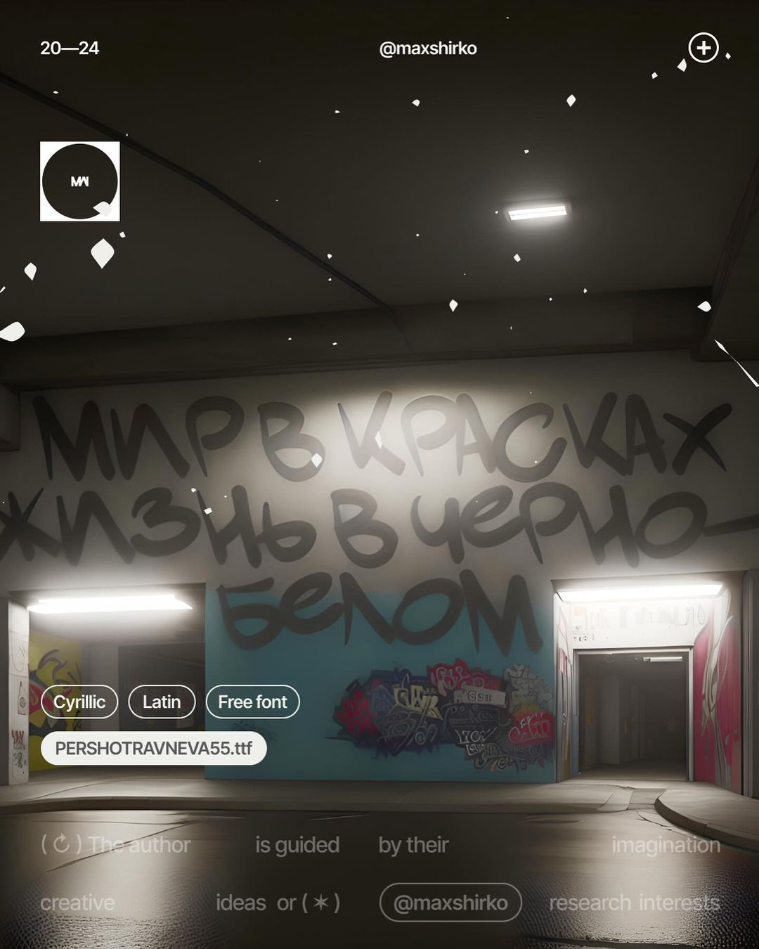 Это что-то из обрывков воспоминаний о тегах на стенах, о исписанных полях в тетрадках, любимых маркерах и несбывшихся мечтах рисовать стритарт. Акцентный, наглый, бунтарский и наивный шрифт Pervomayskaya55