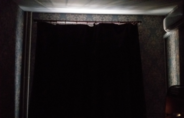 Возможно, картинка не полностью передает, но просвечивало по краям довольно сильно, и иногда мешало спать. Тогда-то я и вспомнил про шторы в гостиницах.