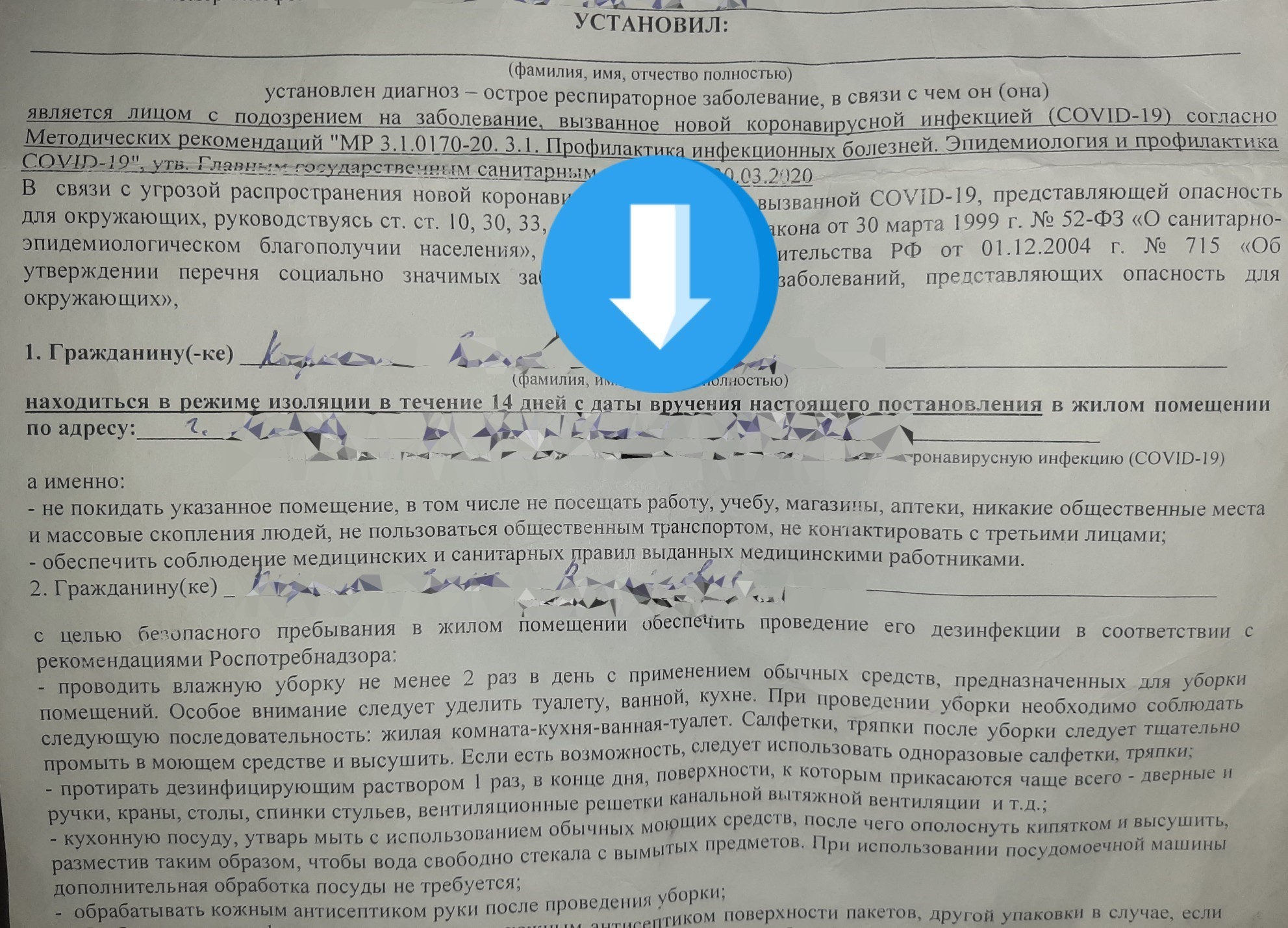 Штраф за нарушение самоизоляции. Интрига - после окончания изоляции