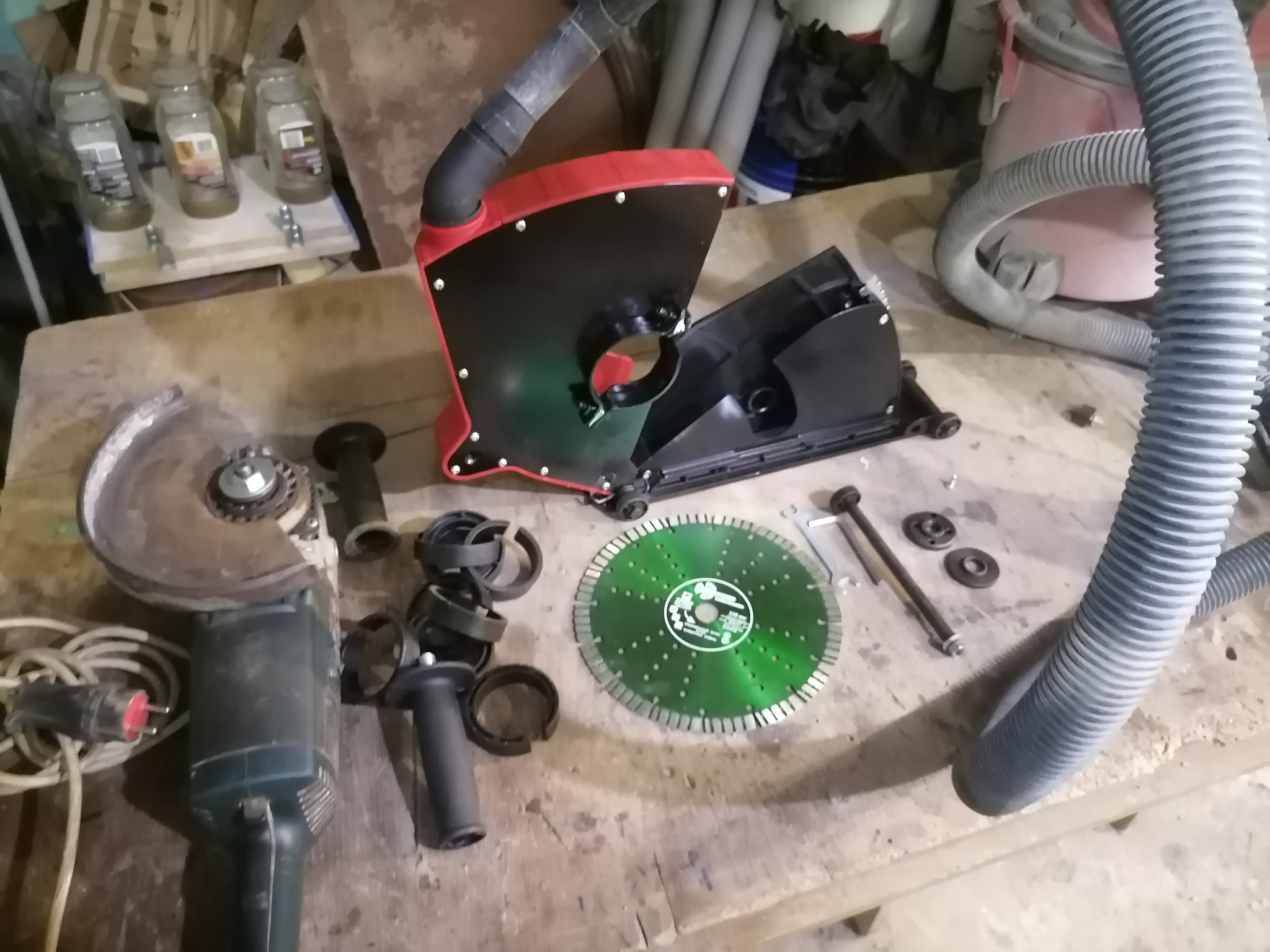 Собран из комплектующих DeWalt. На кожух для штробления 125 мм для УШМ DEWALT DWE46225-XJ надета ушм DEWALT DWE4369.