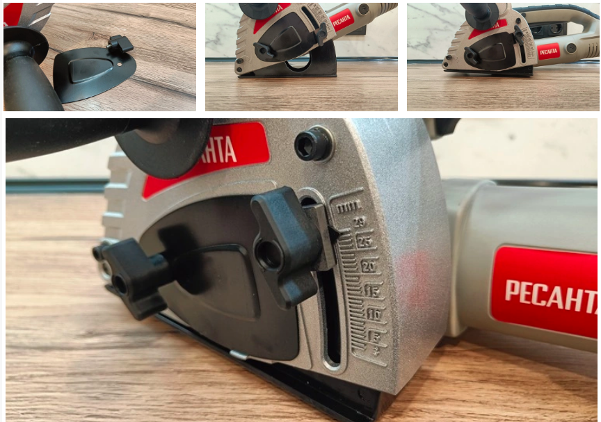 Дополнительные функции - плавный запуск, защита от перегрузки, поддержка оборотов двигателя под нагрузкой, ручная регулировка ширины штробы, подключение к пылесосу;