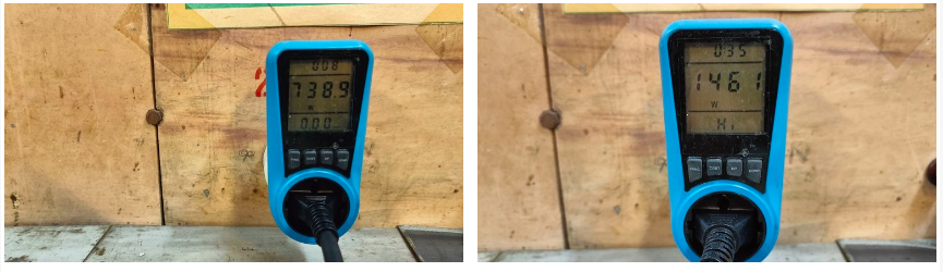 Замерил потребление электроэнергии при работе без нагрузки и во время пиления штробы. В номинальном режиме потребление чуть более 700 Вт, на во время работы оно достигает более 1460Вт, при заявленных в 1600.