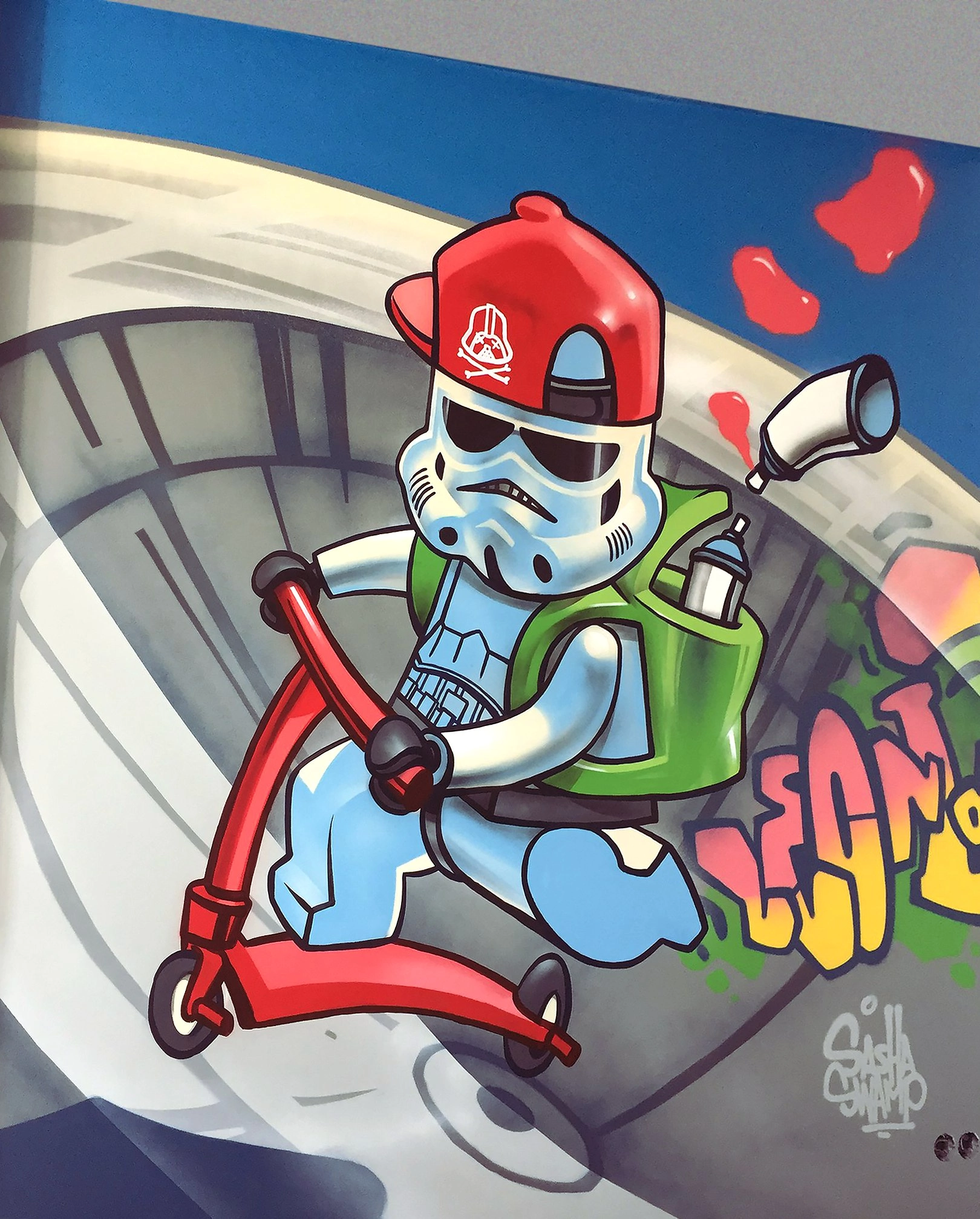 37 turboswamp Star Wars Штурмовик из "звездных воин" на стене 3 года назад Хочу поделиться настенным творчеством. Расписывал стену в детской с пожеланием юного заказчика. Нравится подобный стиль, ещё бы порисовал подобное. Срок изготовления 2 дня, работаю в СПб и Москве [моё] Star Wars LEGO Граффити Ещё 0