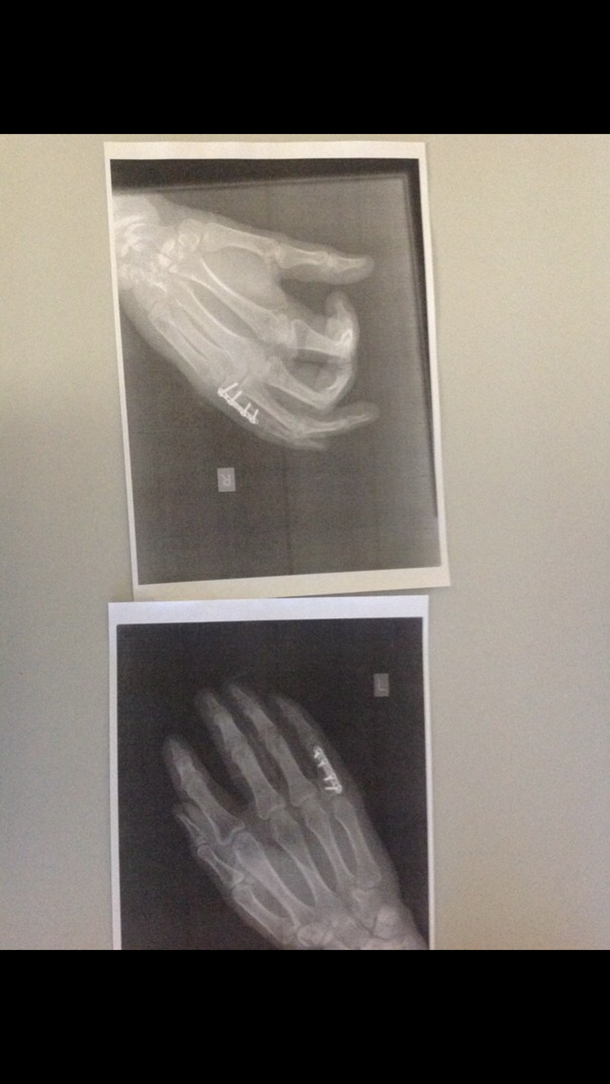 Мизинец рекордсмен. 6 переломов, 3 операции, 1 имплант и вставная кость (вырезали с таза, чтобы палец не отрезать))