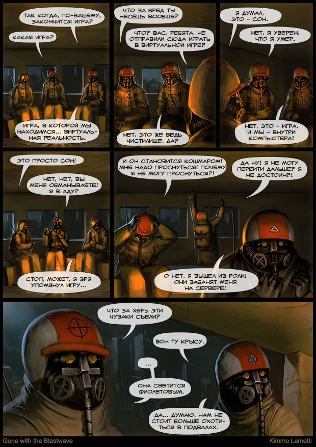 Короткие одностраничные комиксы про солдат выживающем в постъядерном мире. Красная, Синяя и Желтая армии воюют друг с другом пытаясь выбраться из бесконечного разрушенного города. Добротный черный юмор!