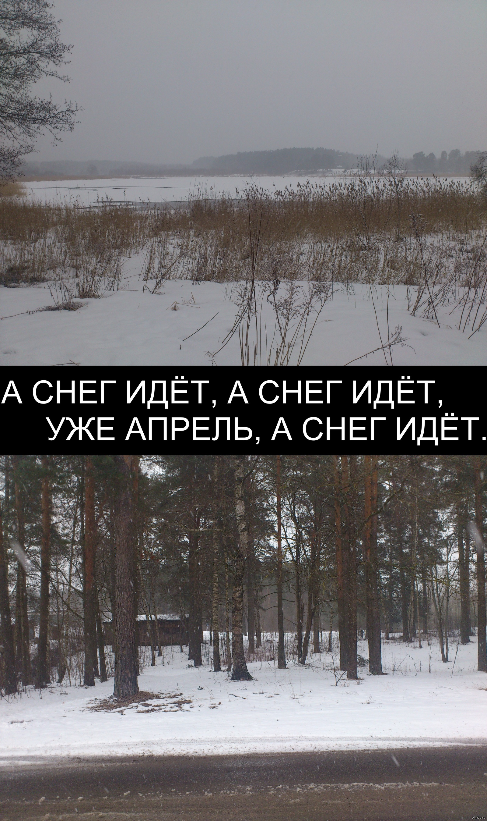 Grammaton 12 лет назад Шутка природы на 1-ое апреля... Природа решила пошутить, обрушив на Ригу снегопад. [моё] Природа 1 апреля Снегопад Озеро Дерево Камыши Юмор Смартфон