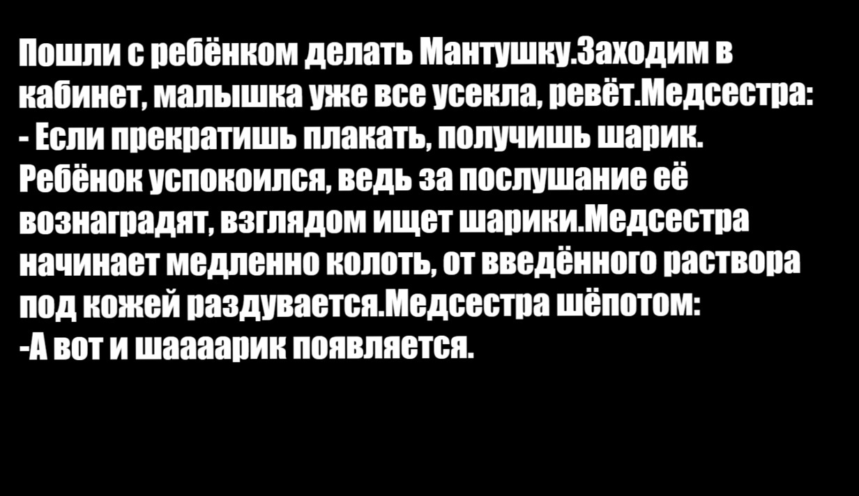 6172 ILoveUranus Юмор для всех и каждого Шутка юмора1 7 месяцев назад Шарик Медсестры Реакция Манту Дети Укол Юмор Картинка с текстом Повтор 295 49 22 16 6 Ещё 0