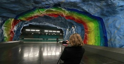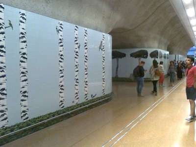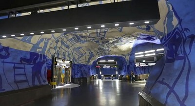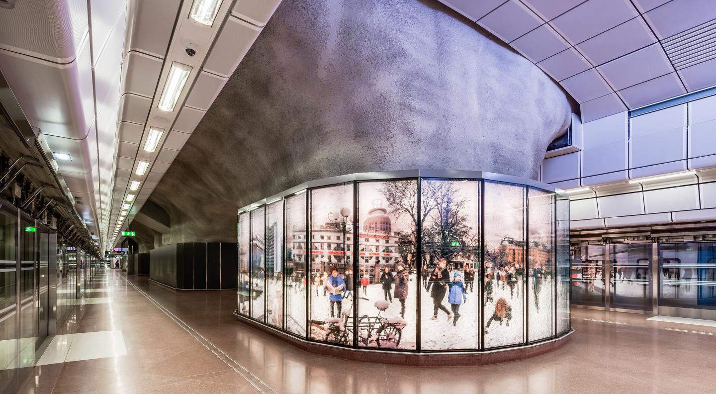 Нет, не здесь. Это метро, а то, что в посте у ТС - уровнем ниже, станция, откуда отбывают и куда прибывают электрички. Лучше гуглить Stockholm City station. Плитка из поста - та, что на первой фотографии. Сделана на самом старом шведском фарфорном заводе Rörstrand.