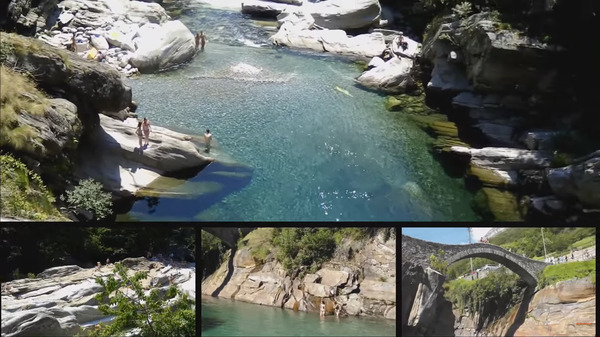 В прошлом видео мы рассказали о Швейцарских автобанах и о смельчаках которые прыгают вниз головой с 220 метровой платины Verzasca. За плотиной находиться озеро Вогорно а буквально в 10 минутах езды от платины находиться красивейшая прозрачная речка, проложившая свой путь среди причудливого нагромождения камней. Река Verzasca своей красотой привлекает много дайверов, которые плавают в абсолютно прозрачной воде и ищут места поглубже. И гребцов желающих испытать себя на прочность спустившись по горной реке. Но река и скалы могут быть очень опасны, за десять лет на реке погибло 35 человек. Но местные пейзажи и великолепие речки привлекает ежегодно более 300000 туристов.