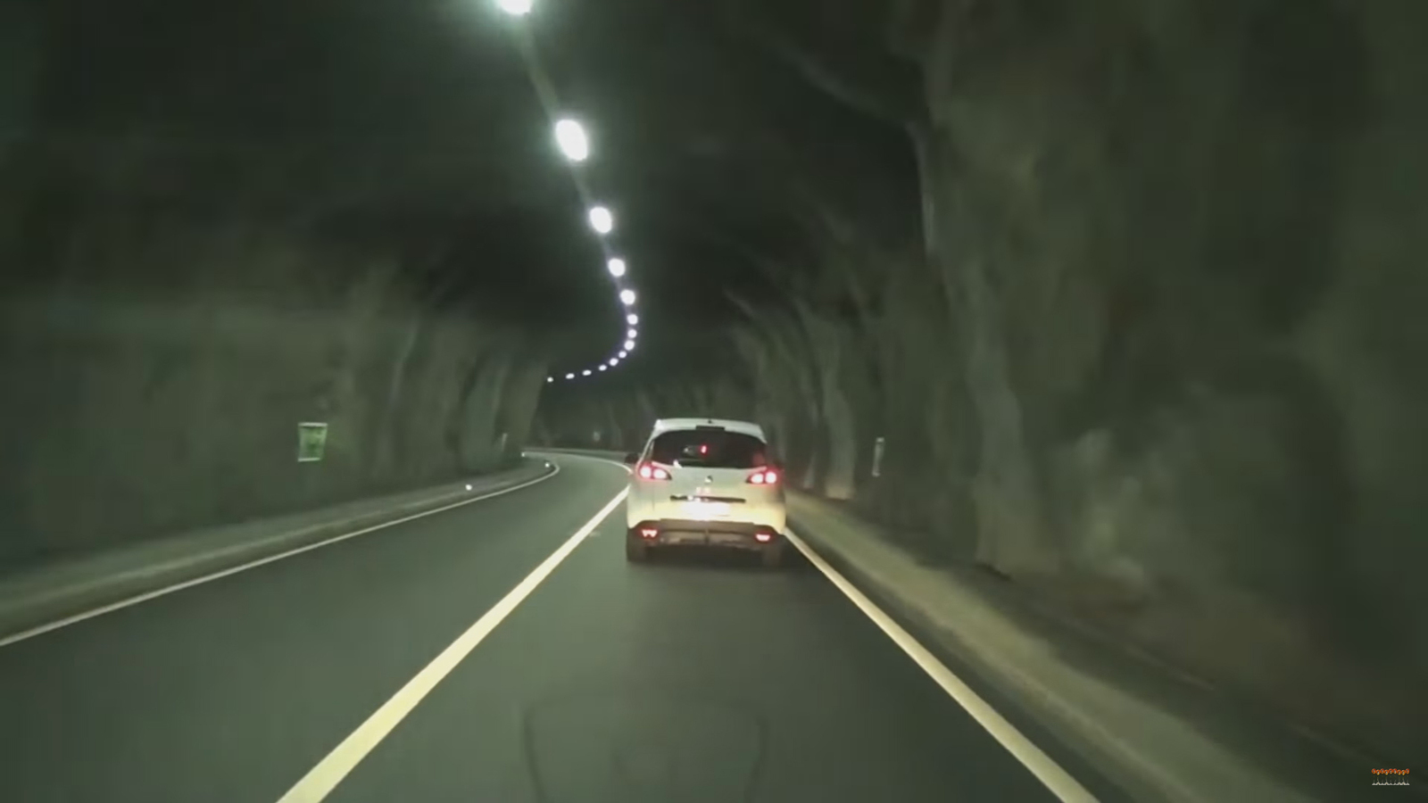 Мы выезжаем с парковки дамбы и продолжаем движение по горной дороге идущей вдоль реки. Дорога по одной полосе в каждую сторону, но машин мало, их практически нет. Впереди несколько туннелей, стены которых не имеют отделку и создают ощущение словно едешь сквозь гору. Недалеко от плотины находиться мост Ponte dei Salti.