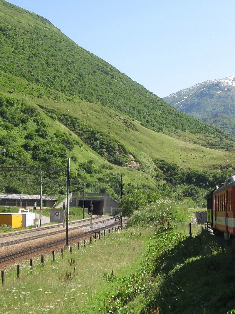 А для перевозки пассажиров и грузов, там проложен базисный туннель Фурка, длиной 15 км, который ныряет под горами ( https://ru.wikipedia.org/wiki/Фурка_(базисный_тоннель) )