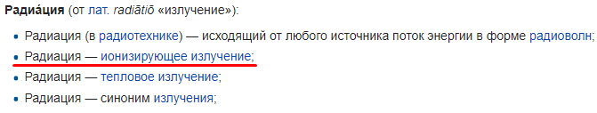 Не согласен. Тот вопрос терминологии вообще конечно. Но в западной терминологии все излучение - радиация. В нашей терминологии рентген обычно не относят к бытовому понятию радиации но относят к ионизирующим излучениям. А рентген вполне от розетки работает.