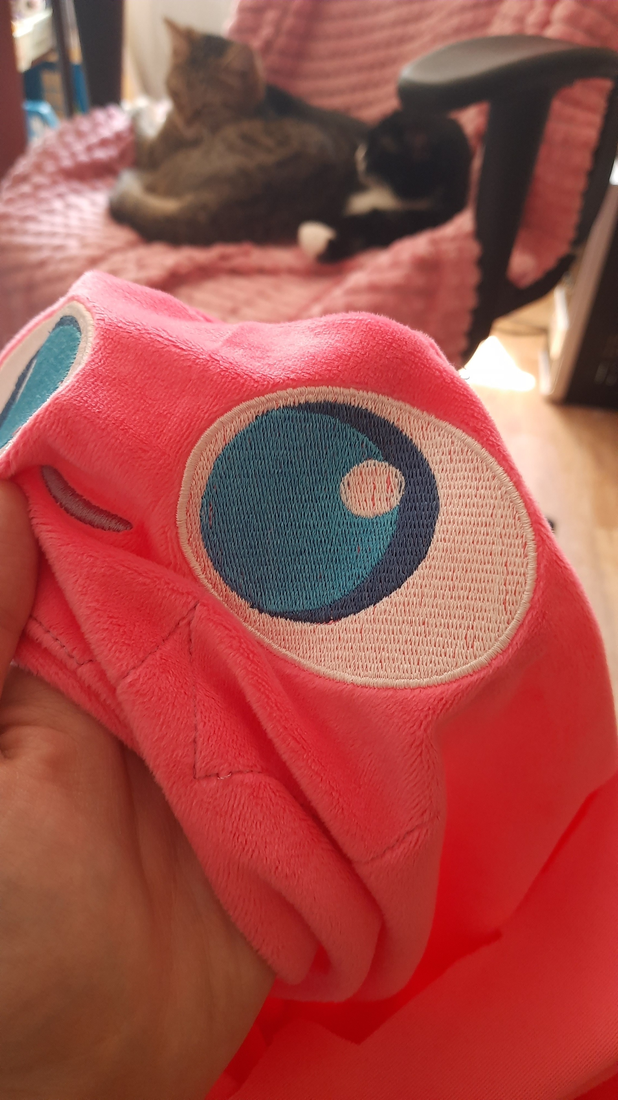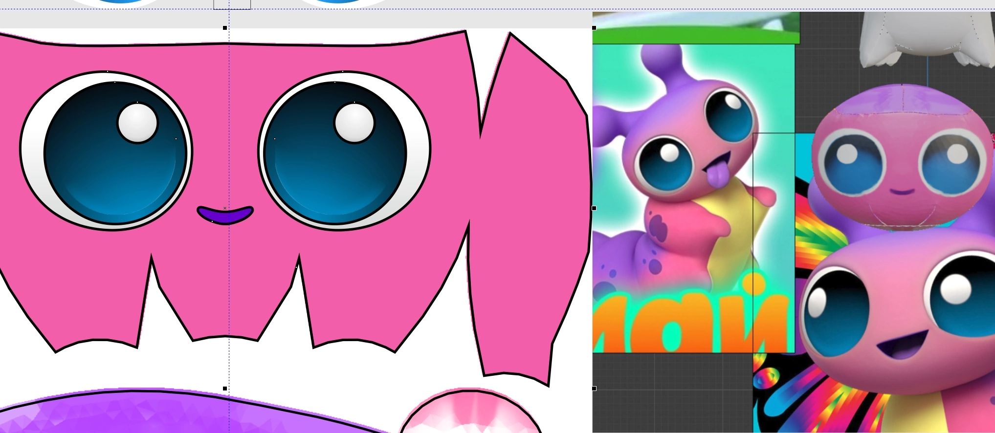 Форму головы изменила. Чтобы фиолетовый и розовый не делили её пополам, а был рисунок.
