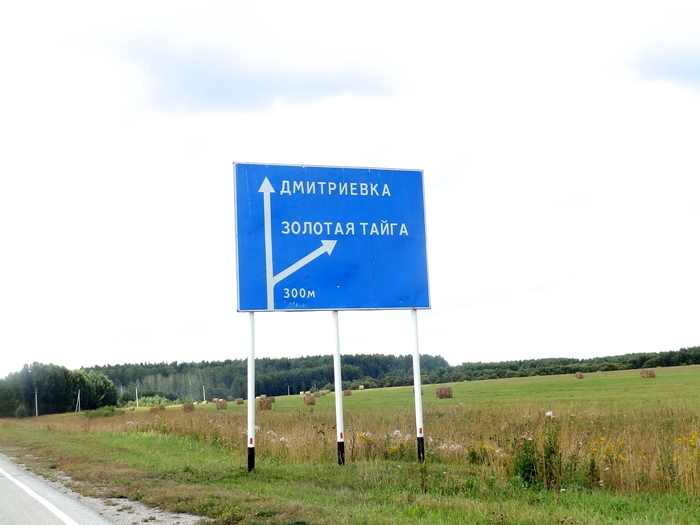 Указатель при подъезде к Дмитриевке. В Золотой Тайге мы побываем позже, в этот раз мы туда не поехали, так как далековато.