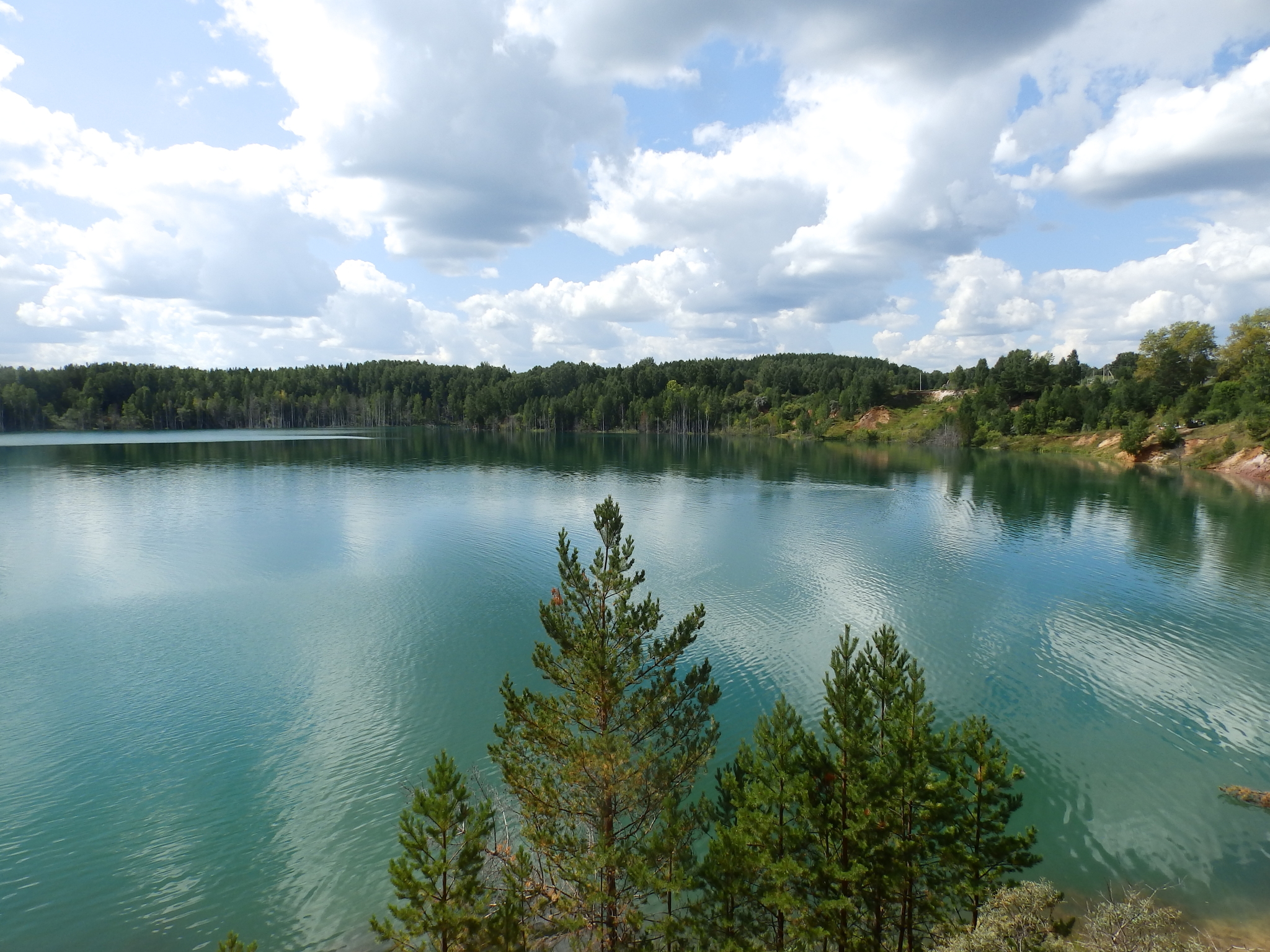 В первый день мы поехали от отца в мою родную деревню к маме, по пути останавливаясь для фото. Первая остановка - Апрельский карьер.Здесь добывали глину, потом добрались до подземных вод и теперь тут красивое озеро, где берега покрыты разной глиной от красной до голубой. Ну и толпы народа прилагаются.