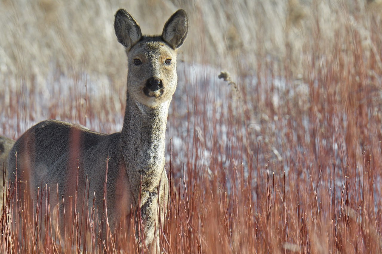Несмотря на морозные январские дни, сибирская косуля позирует государственным инспекторам в Горном кластере национального парка «Шушенский бор».