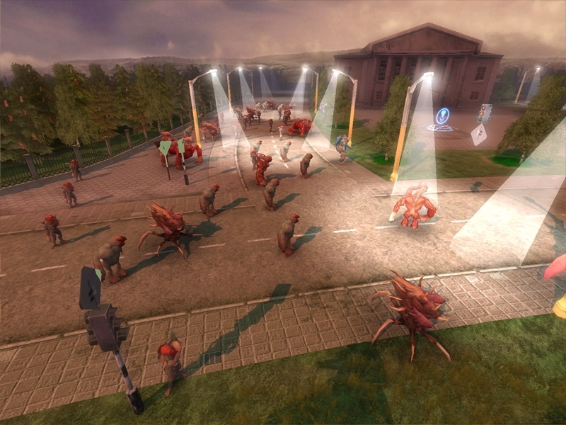 2. В игре отсутствует строительство баз, а вместо неё штабной автомобиль (или пришелец-матка), что присоединяются к расположенным то там то тут источникам ресурсов и телепортирующие войска на поле боя. Нечто похожее мы увидим лет через -10 в Command & Conquer 4 и Homeworld. Не могу сказать, что на тот 2006 год это было новинкой, но плюс игре добавило.