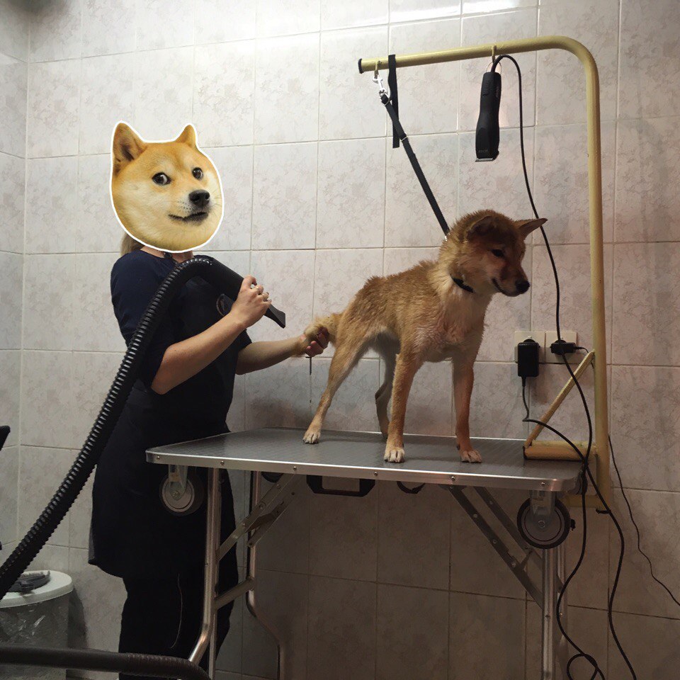 Я когда в юниорку повезла мыть-выдувать суку, вернулась домой с голой собакой и шерстью везде - в глазах, на одежде, в волосах в трусах в конце концов)))
