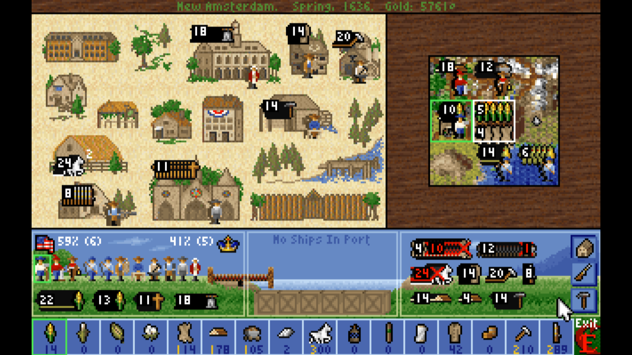 Часть юнитов (обозы, корабли, артиллерия) можно произвести на месте, часть (корабли и артиллерия) купить в Европе и привезти. Есть механика периодической "помощи наёмниками", когда за отдельную плату королевский корабль привезёт вам опытных солдат, иногда с артиллерией - они также станут полноправными членами вашей колонии.
