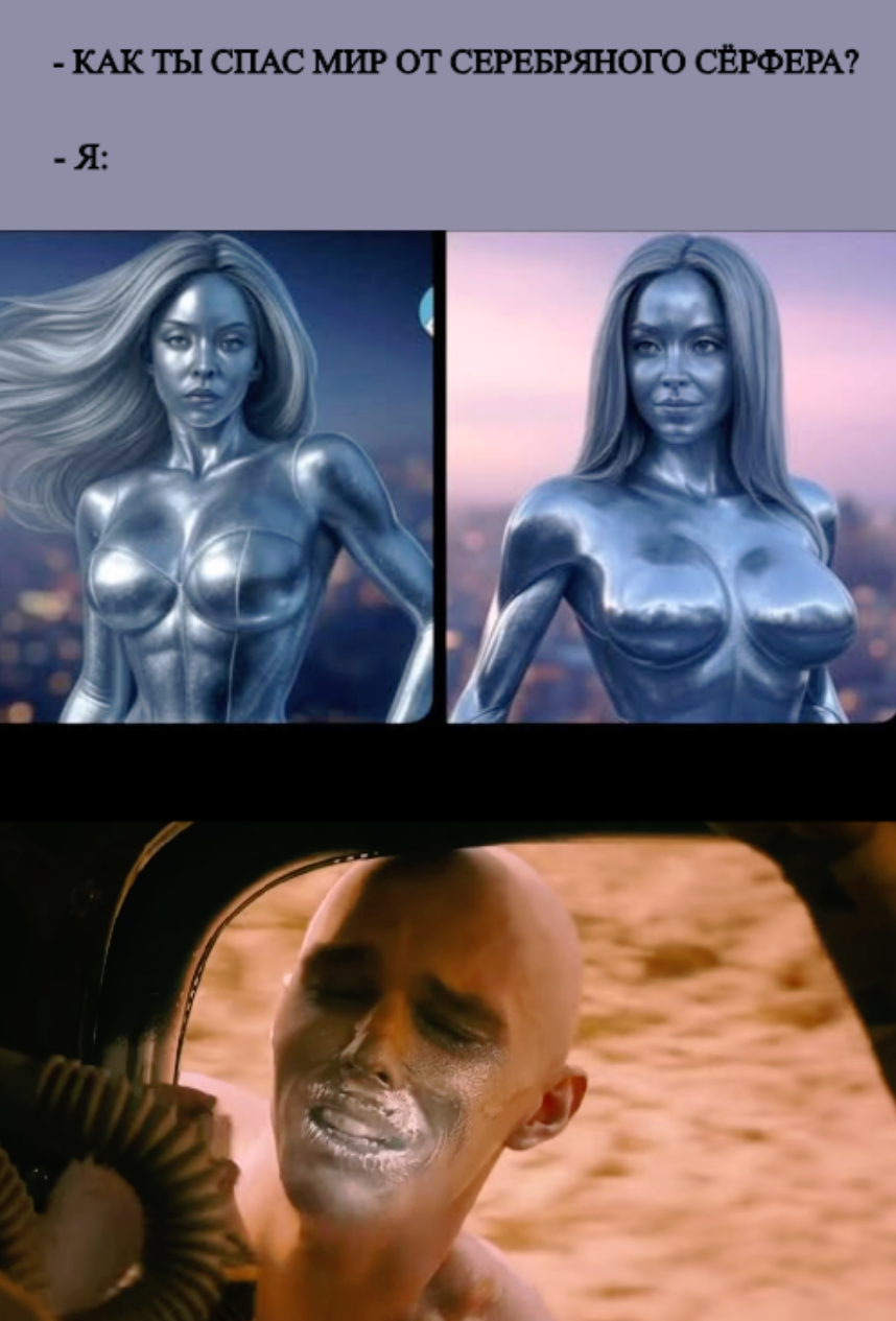 127 Аноним Противозачаточные шутки Сидни Суини в Фантастической Четвертке 7 месяцев назад Фантастическая четвёрка Серебряный серфер Сидни Суини Безумный Макс Спасение мира Мемы Картинка с текстом Арты нейросетей 11 3 1 Ещё 0