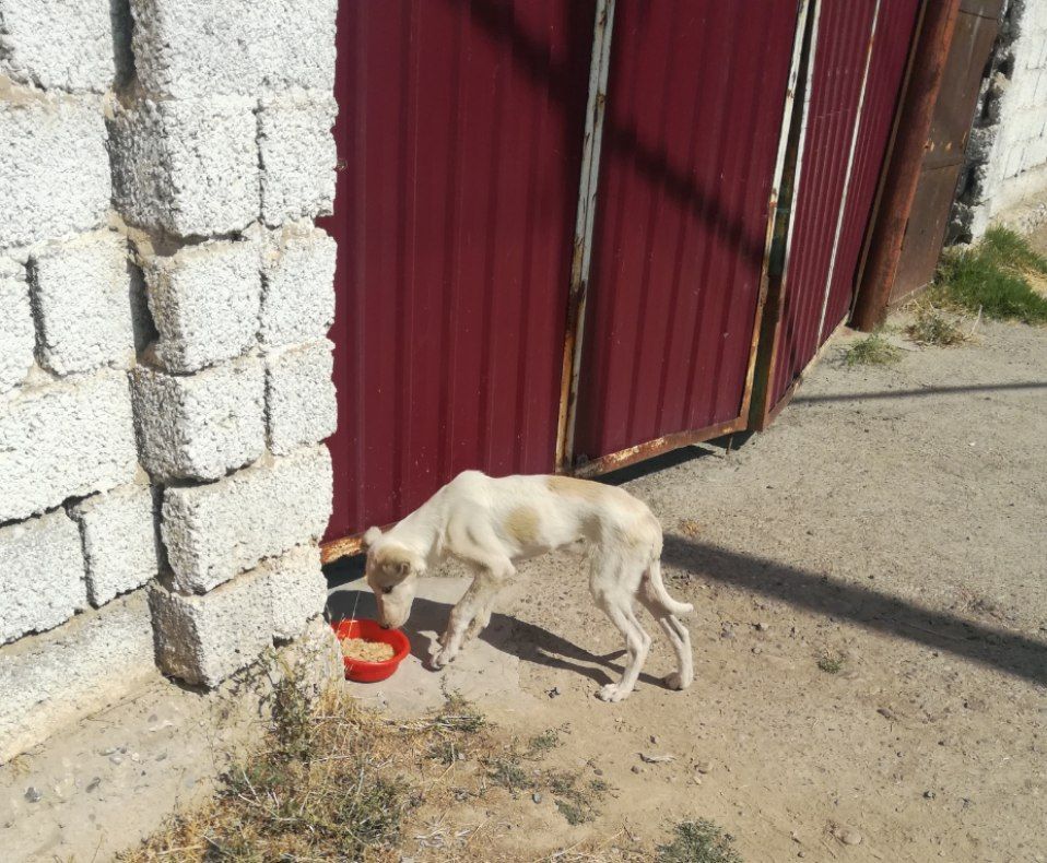 В сентябре за нашим домом появился собакен. Похож был на паука, высокий худющий, смотреть было страшно. Рядом цех, думала ихНИЙ.  Увы, это был просто брошенный щенок. Тихонько начали его кормить. Хоть на человека стал похож.
