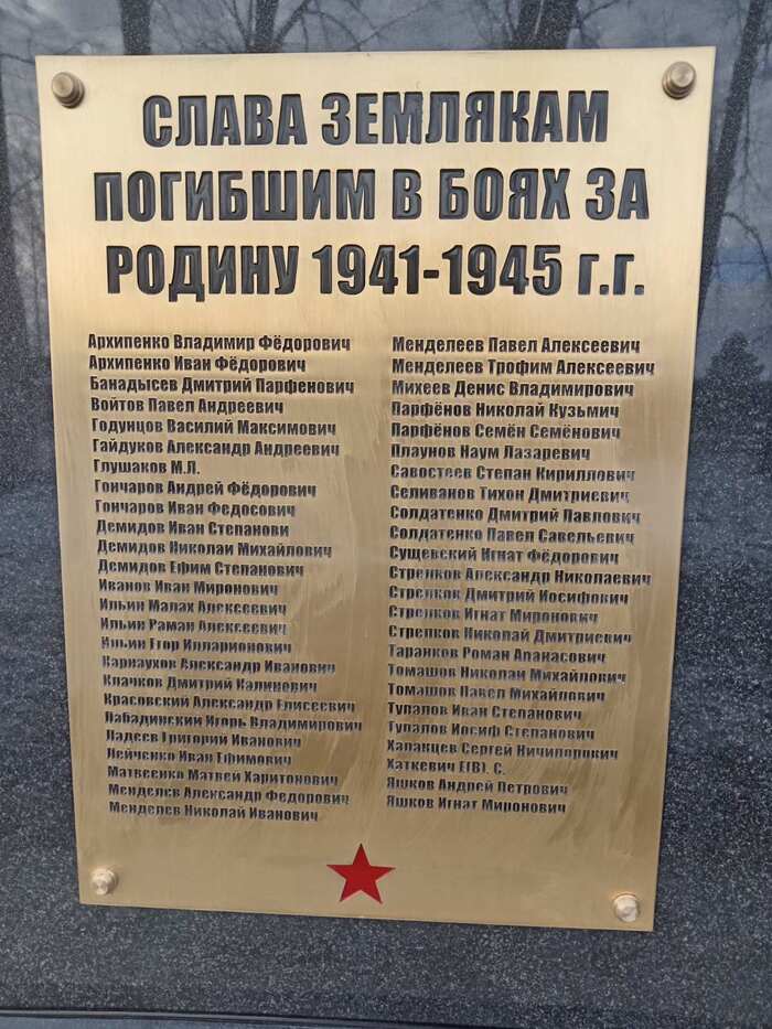 Есть желание разместить рядом со стеллой стенд или книгу, с информацией о тех кто указан на стелле. Я смог собрать немного инфорации и фотографий, очень хочется найти данные и по другим людям. Обратился к жителям деревни через представителся исполкома, но пока данных не много.