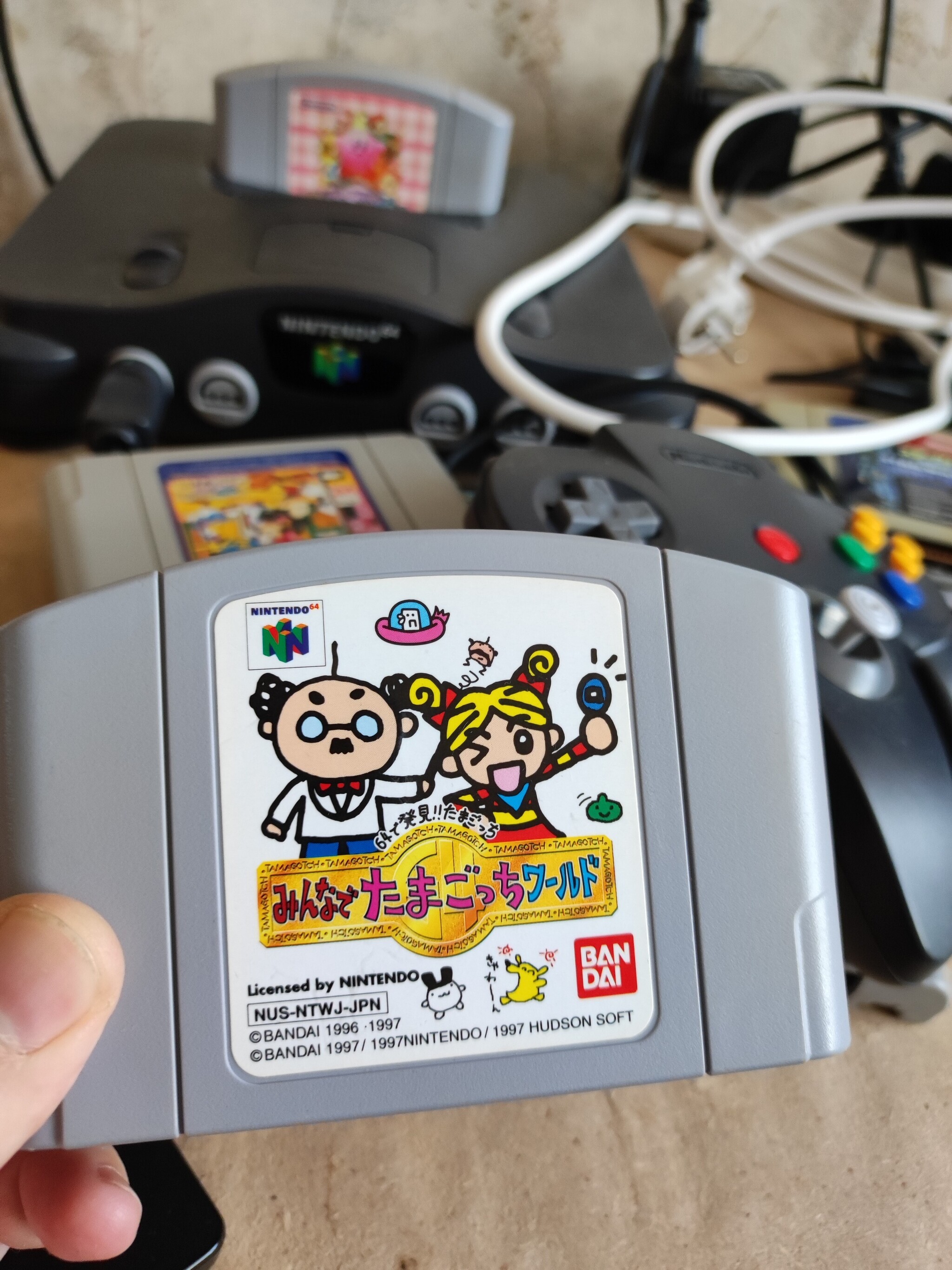 Слышал про такой. Смотри, что у меня есть. Это картридж тамагочи для Nintendo 64 😀 Там тоже целый город
