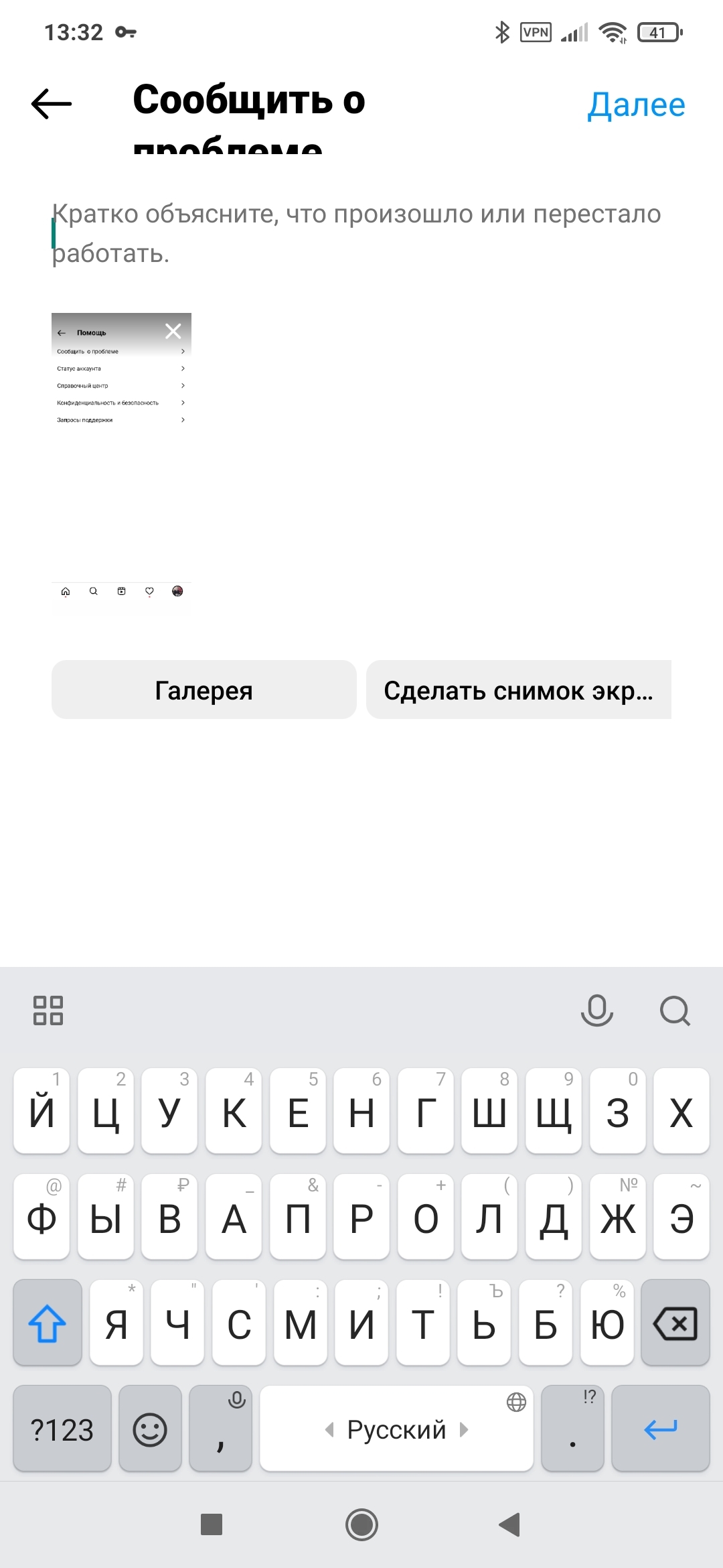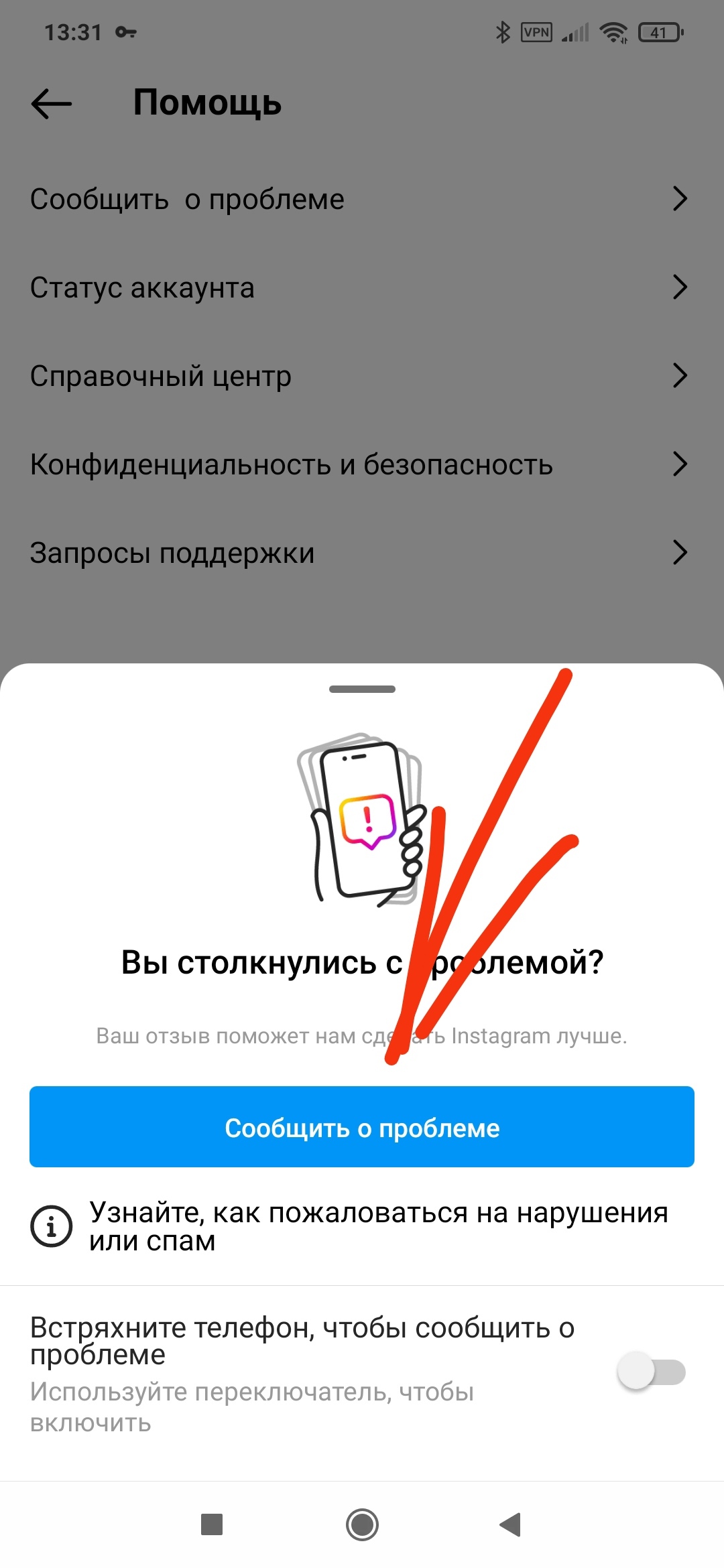 4) нажать на кнопку "сообщить о проблеме"