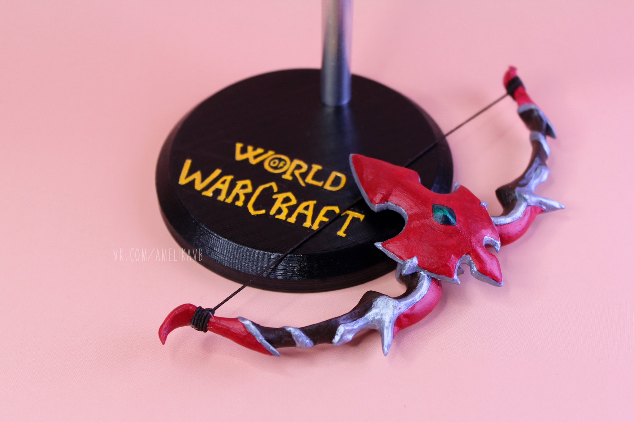Лук, черепки на колчане и плечах и подставка распечатаны на 3д принтере и расписаны вручную)