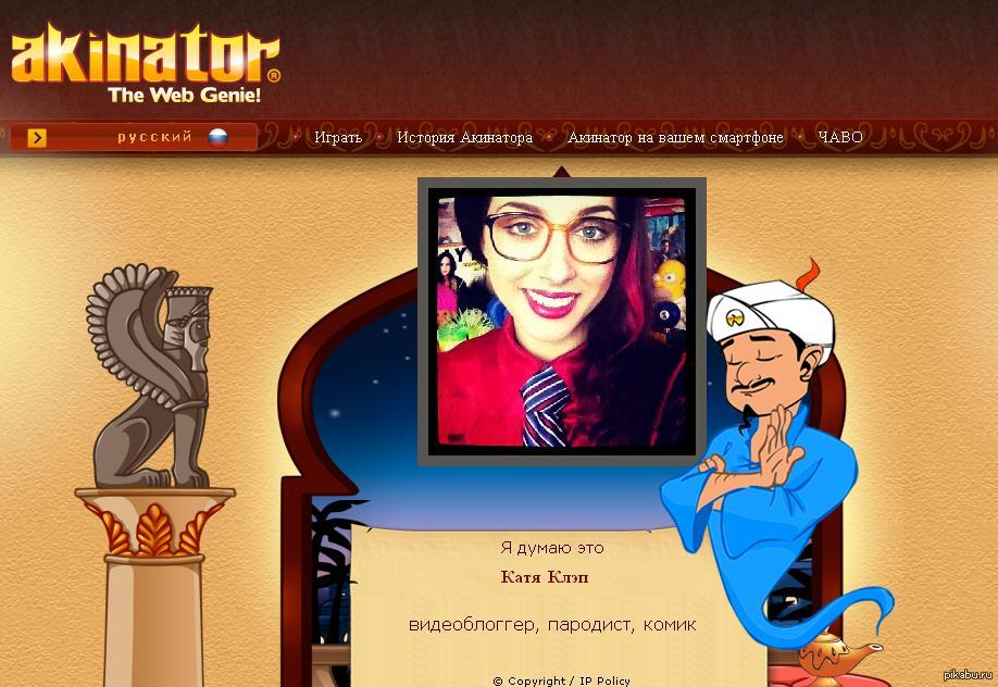 quail помнит пароль аськи Силы и способности Акинатора немного преувеличены. 11 лет назад Я загадал небезызвестного человека с розовой чашечкой, и после ответов на вопросы, что это мужчина, это не женщина, и ещё на какие-то вопросы он выдал мне это: Акинатор Не смог отгадать Zaxaroid