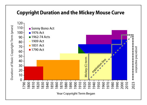 ну да, есть кривая Микки Мауса - как дисней каждый раз лоббировал продление копирайта для защиты своей продукции.