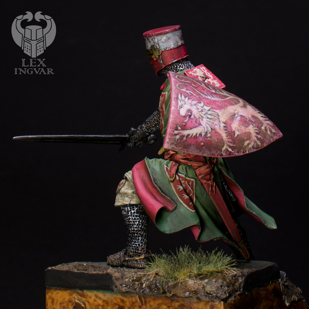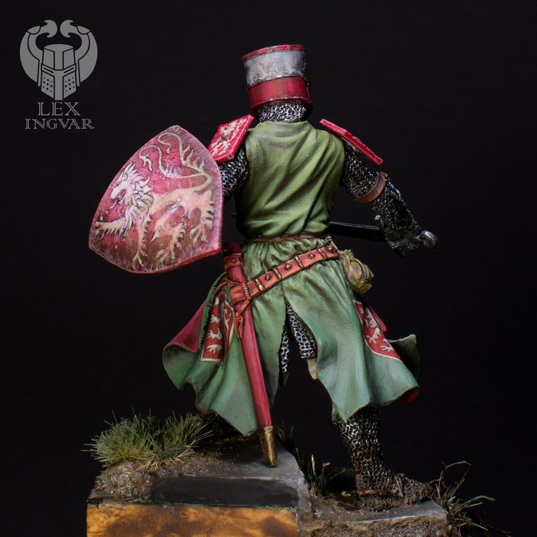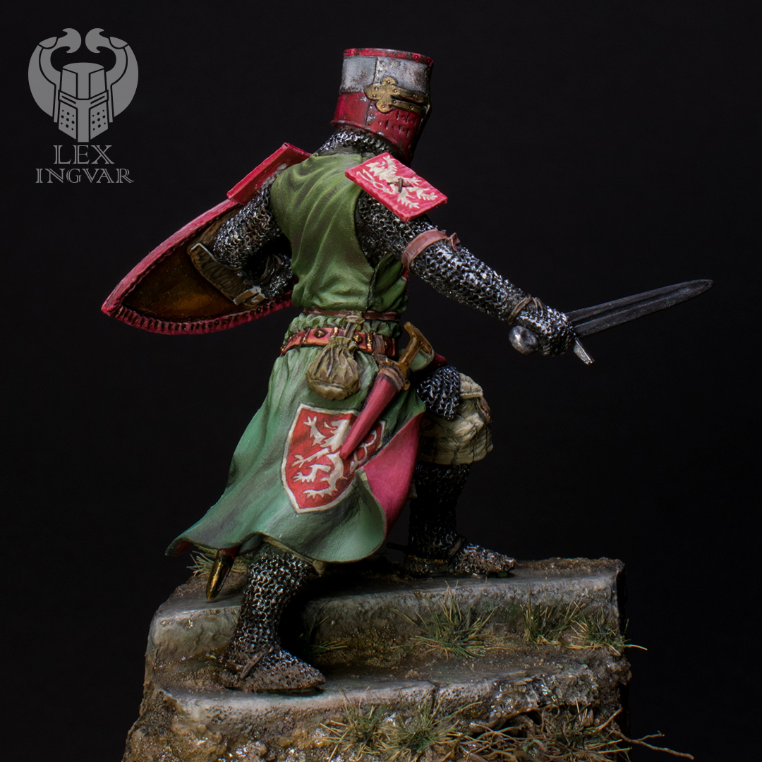 Личность этого господина в свое время достаточно известная. Впрочем, как и всего рода де Монфоров. Конкретно этот прославился большим вкладом во Вторую войну баронов. Зеленый цвет сюрко выбран по причине того, что именно в таком цвете этого персонажа можно увидеть на средневековых витражах.